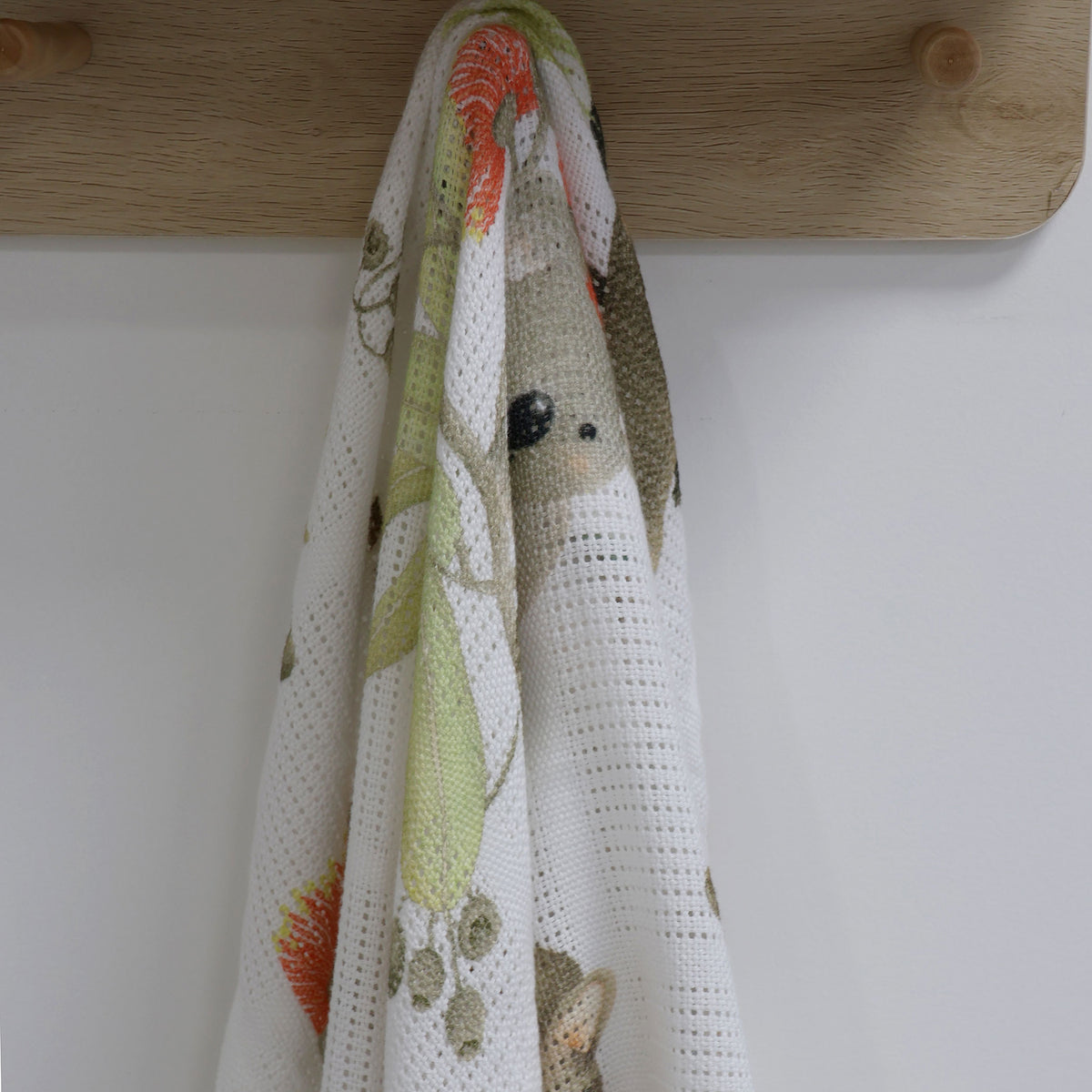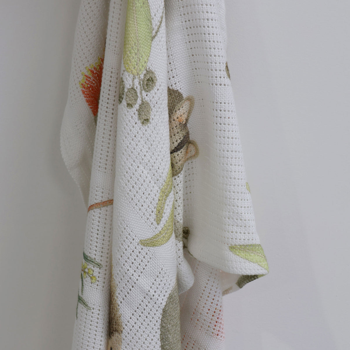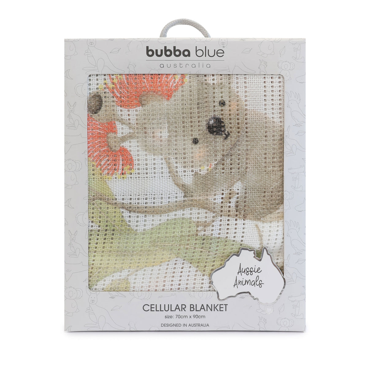 This gorgeous soft & comfortable, airflow, classic cellular blanket designed by Bubba Blue is the perfect blanket for all year round. It features a sweet all over print with many of your favourite Australian bush animals.
