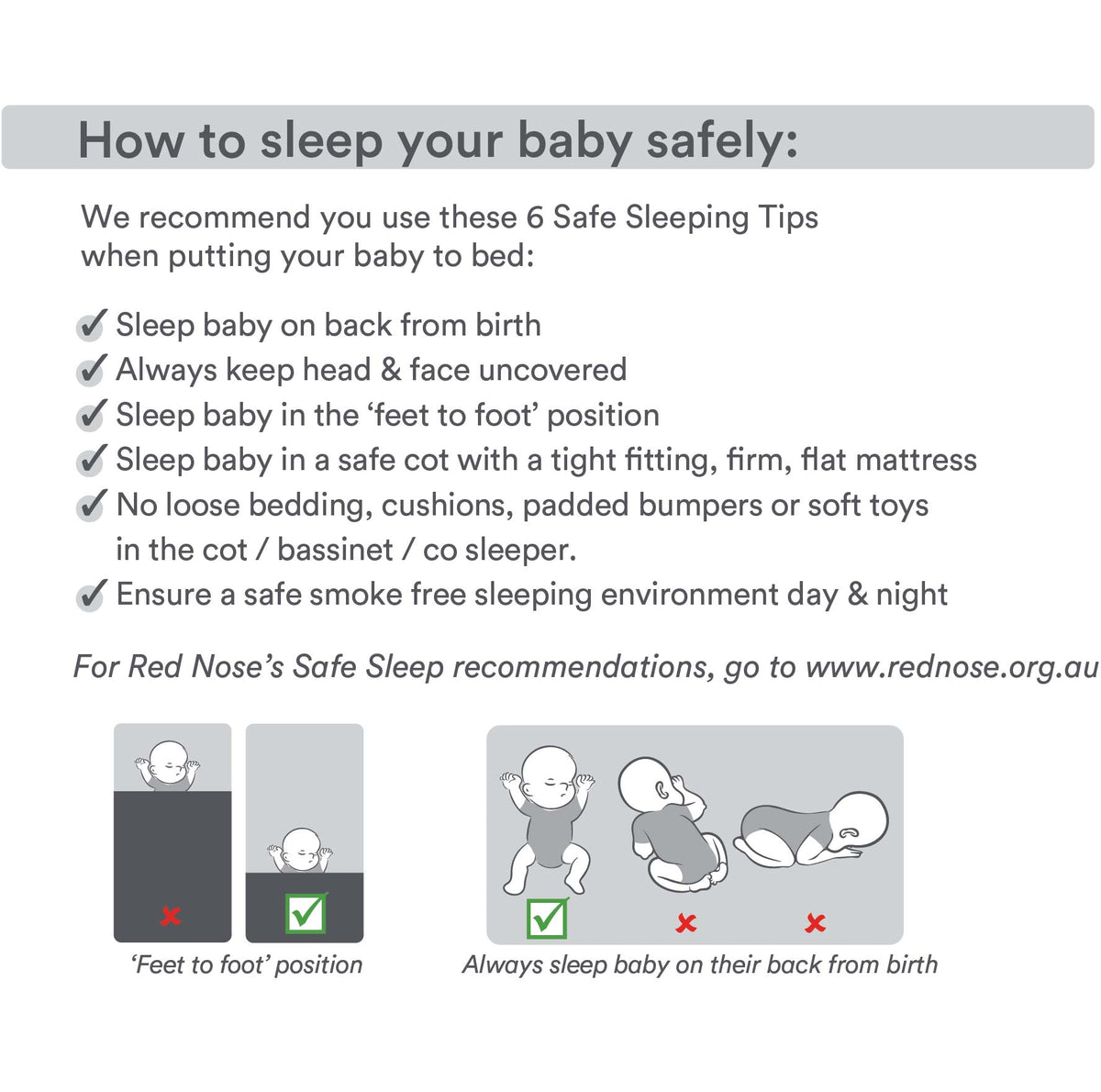 • This product has been reviewed by RED NOSE AUSTRALIA and meets the RED NOSE AUSTRALIA Safe Sleeping Criteria