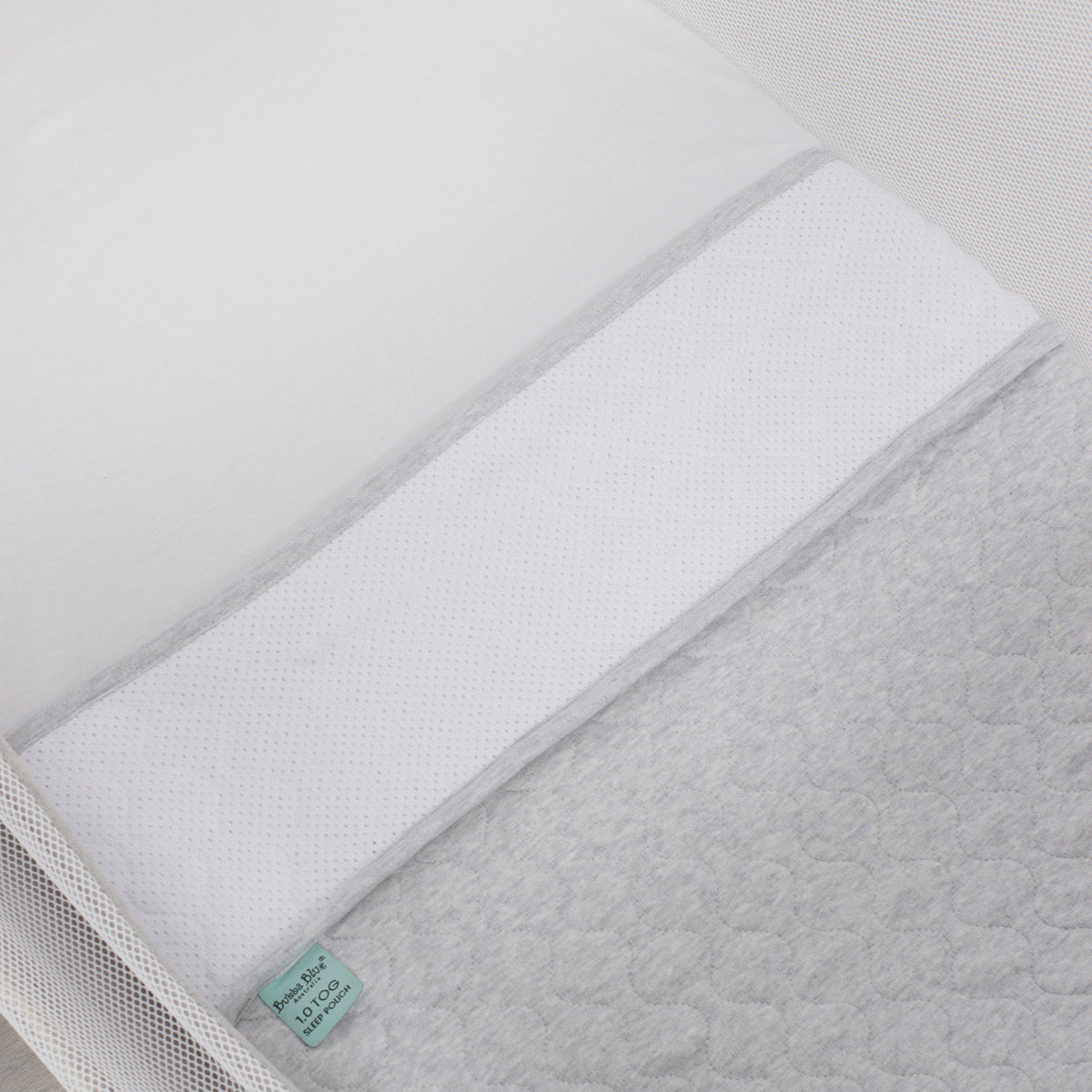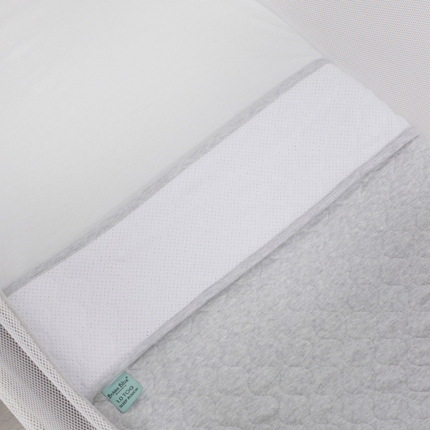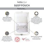• The Bubba Blue Sleep Pouch® features the AIR™+ Air Flow Panel, on the top edge of the Sleep Pouch that lies across baby's chest. Made from cotton organic mesh & 3D spacer mesh for optimal air circulation for safety and comfort.