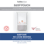 Sleep baby safely with the patented Bubba Blue® Sleep Pouch. An all-in-one age adjustable sleep pouch design to help reduce the risk associated with loose bedding for babies from newborn to 12 months.