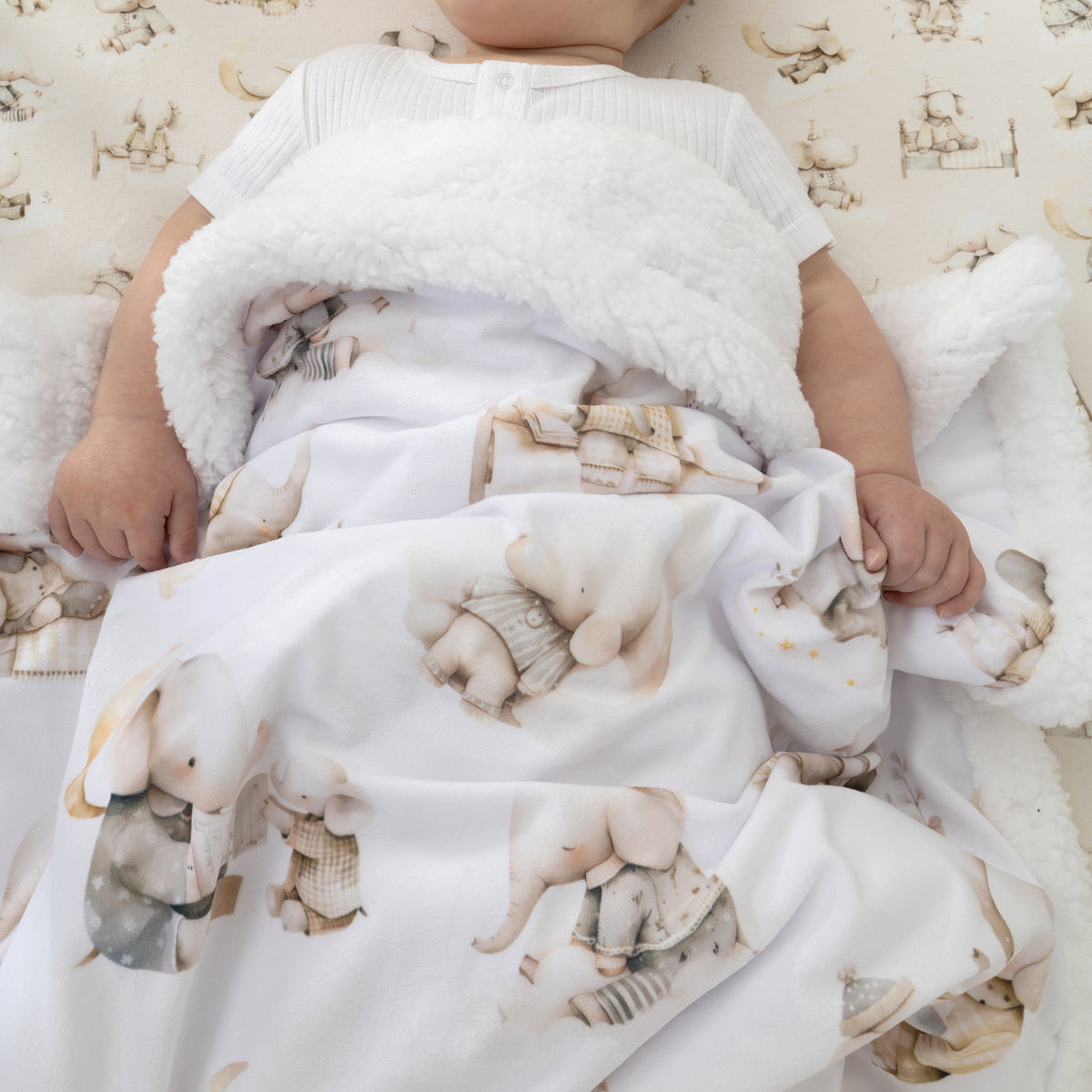 Elephant Bedtime Reversible Fleece Cuddle Blanket