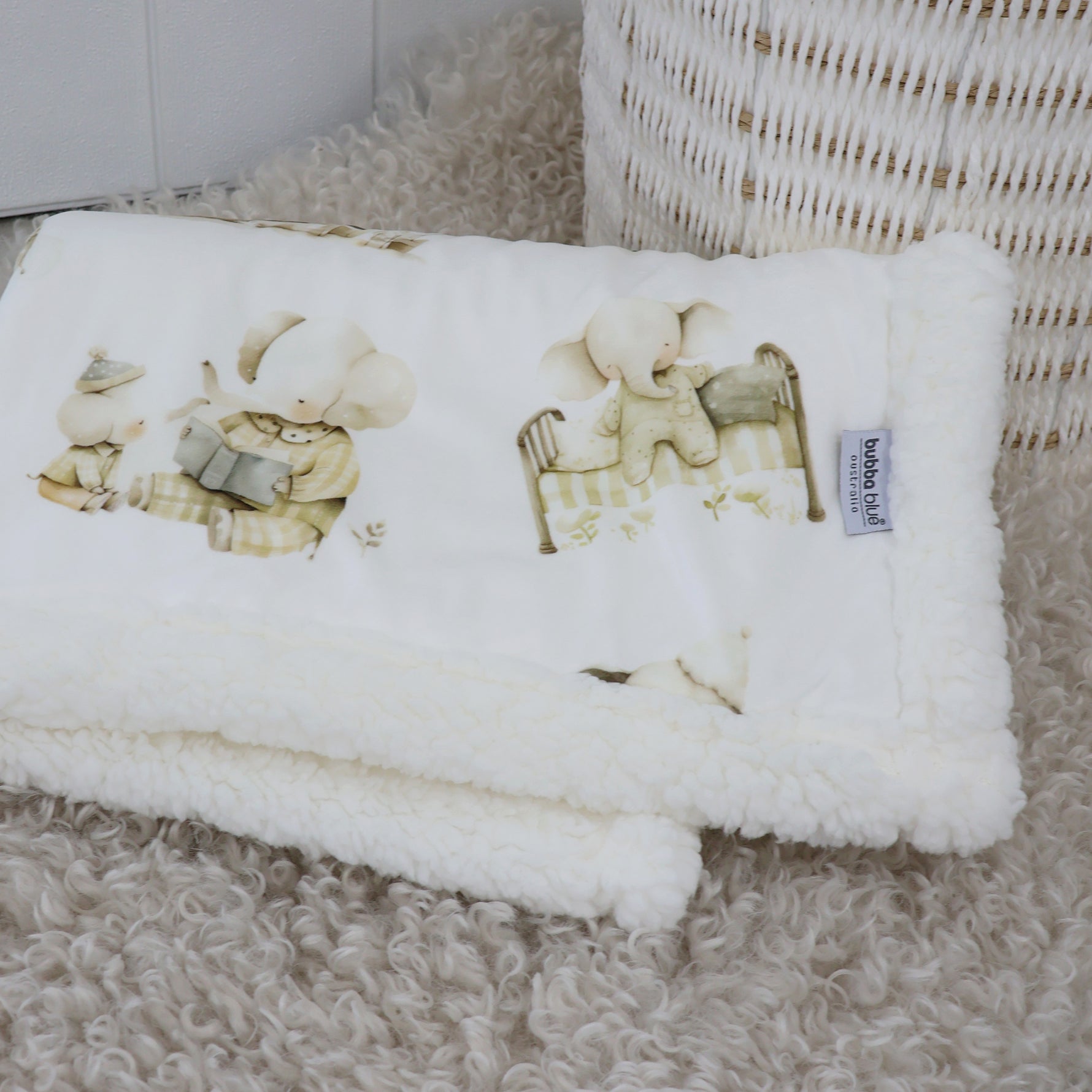 This gorgeous blanket designed by Bubba Blue features a plush velour front and cosy fleece lining.