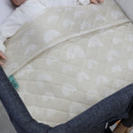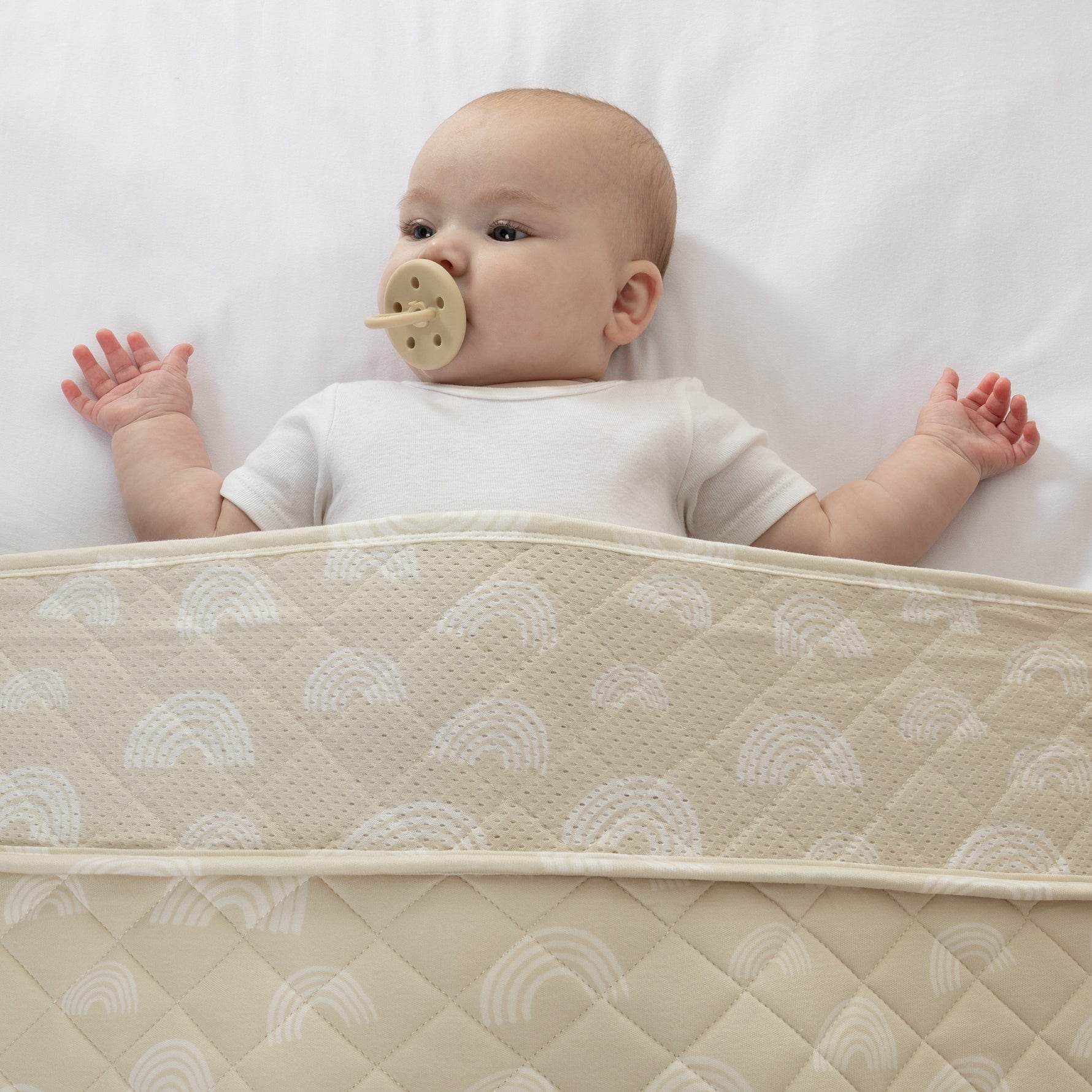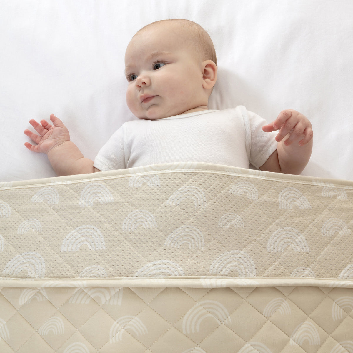• A snug pouch design eliminates loose bedding for safety. It will fit most size mattresses with its elasticised underside to ensure a snug comfortable fit.