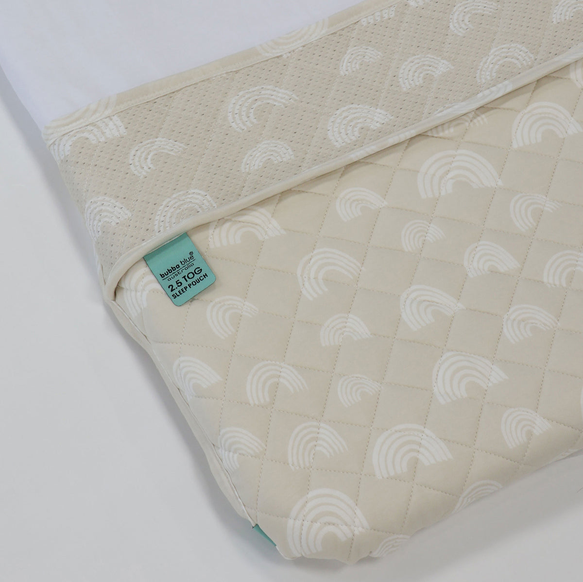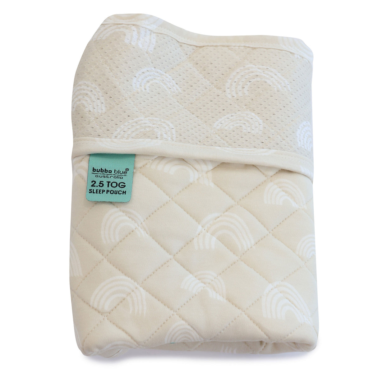 • The Bubba Blue Sleep Pouch® features the AIR™+ Air Flow Panel, on the top edge of the Sleep Pouch that lies across baby's chest. Made from cotton organic mesh & 3D spacer mesh for optimal air circulation for safety and comfort.