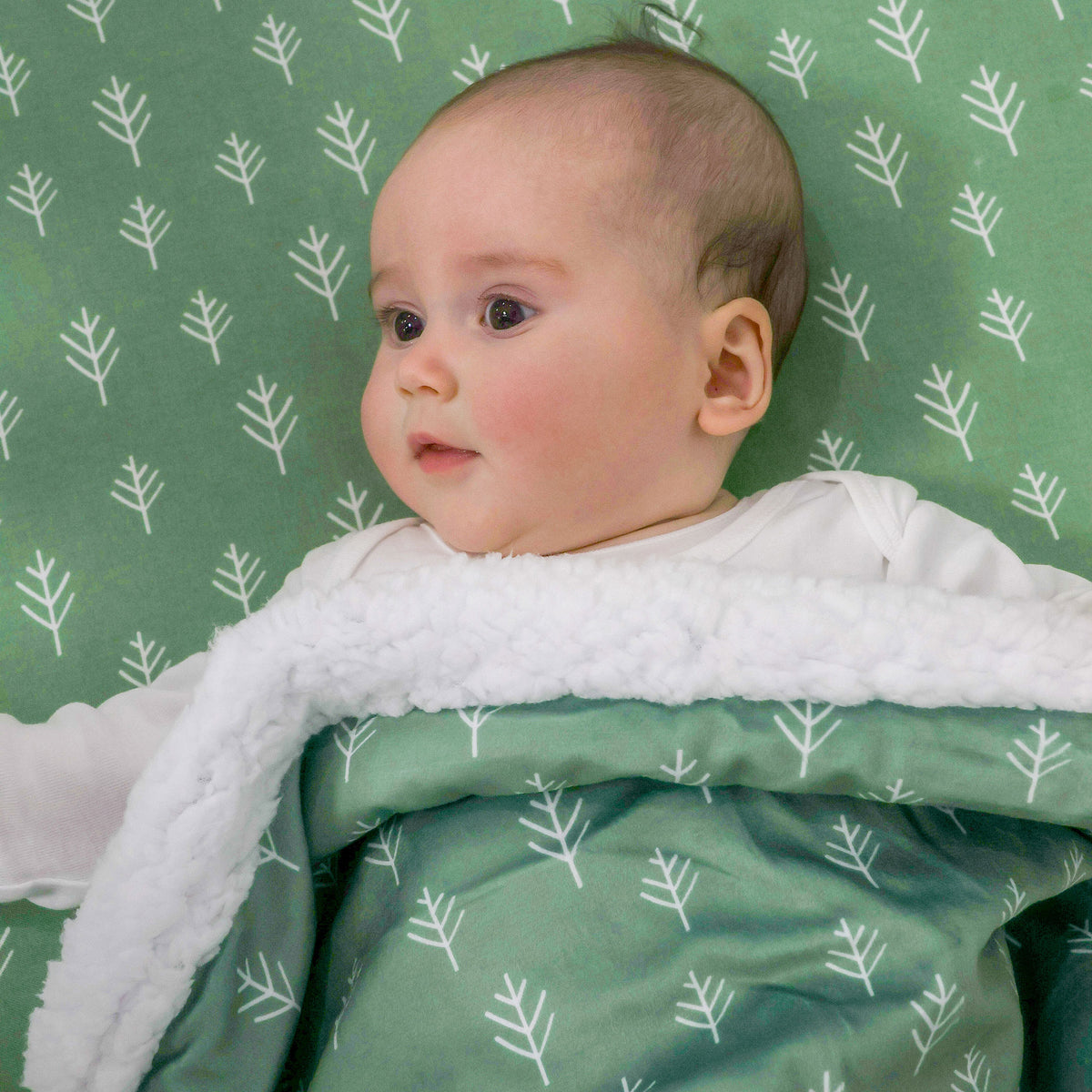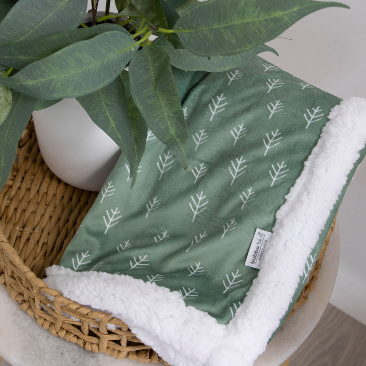 Nordic Velour Cuddle Blanket with Fleece Lining - Avocado/Forest