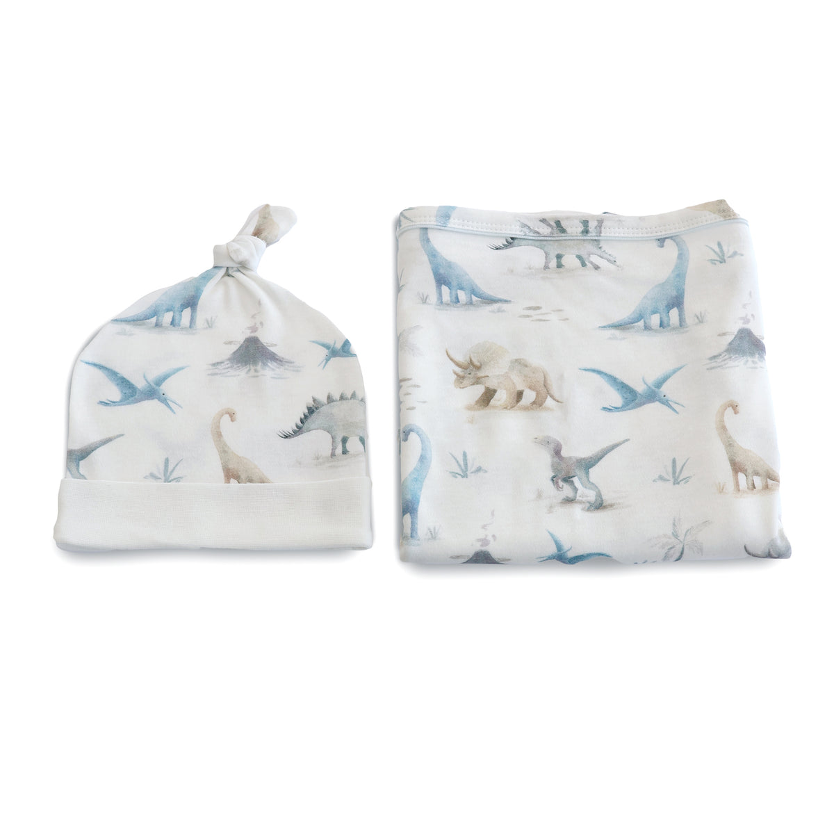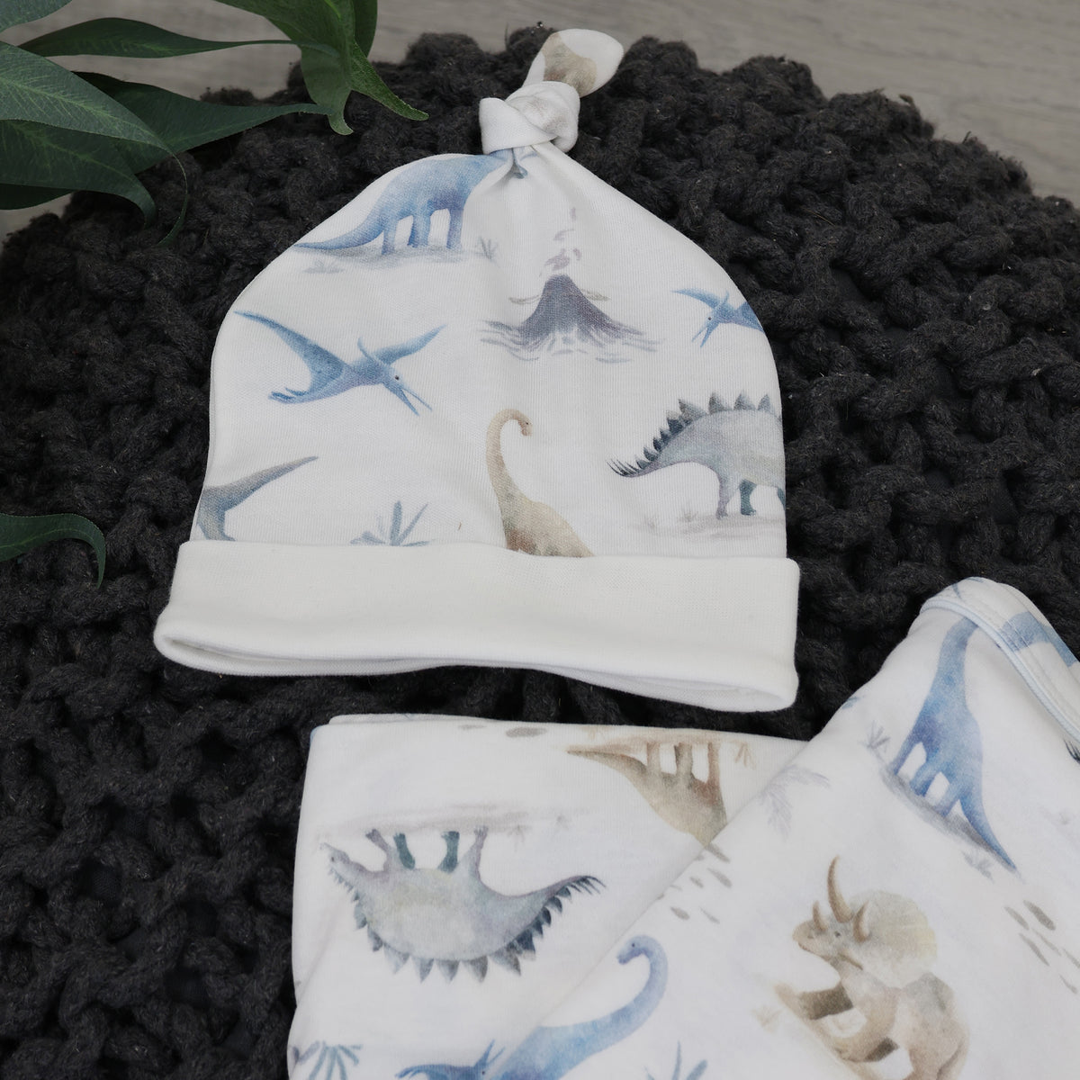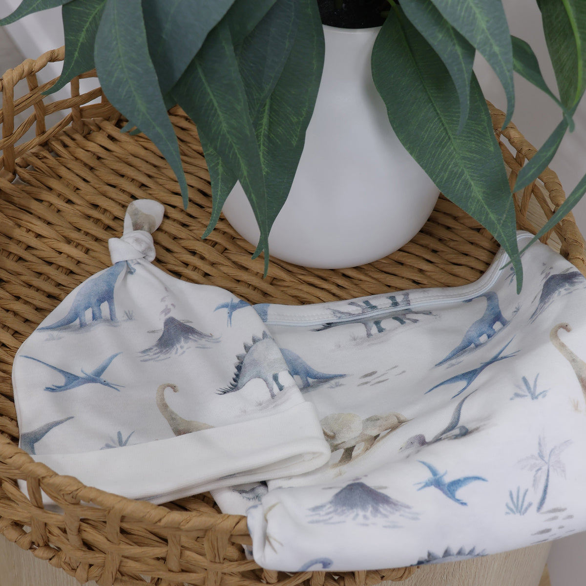Jurassic Bamboo 2PCS Jersey Swaddle & Beanie Set