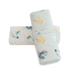 At the break of dawn, little rooster greeted the day with a cheerful crow. With bright eyes and soft, golden feathers, he hopped across the dewy barnyard, where the sparkling grass and playful wildflowers joined in his joyful melody. In the warm morning light his small, but spirited journey reminded everyone that even the tiniest rooster could light up the world with wonder. This cute collection features soft, calming tones of blue, so suitable for your baby boy nursery. These gorgeous printed wraps designed by Bubba Blue are made from soft jersey for comfort and have just the right amount of stretch to keep your little one cosy and well wrapped.