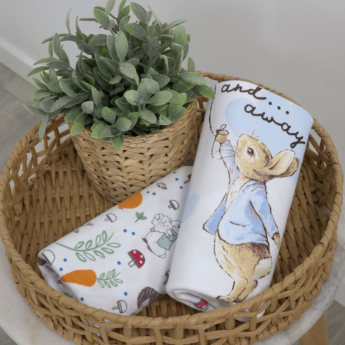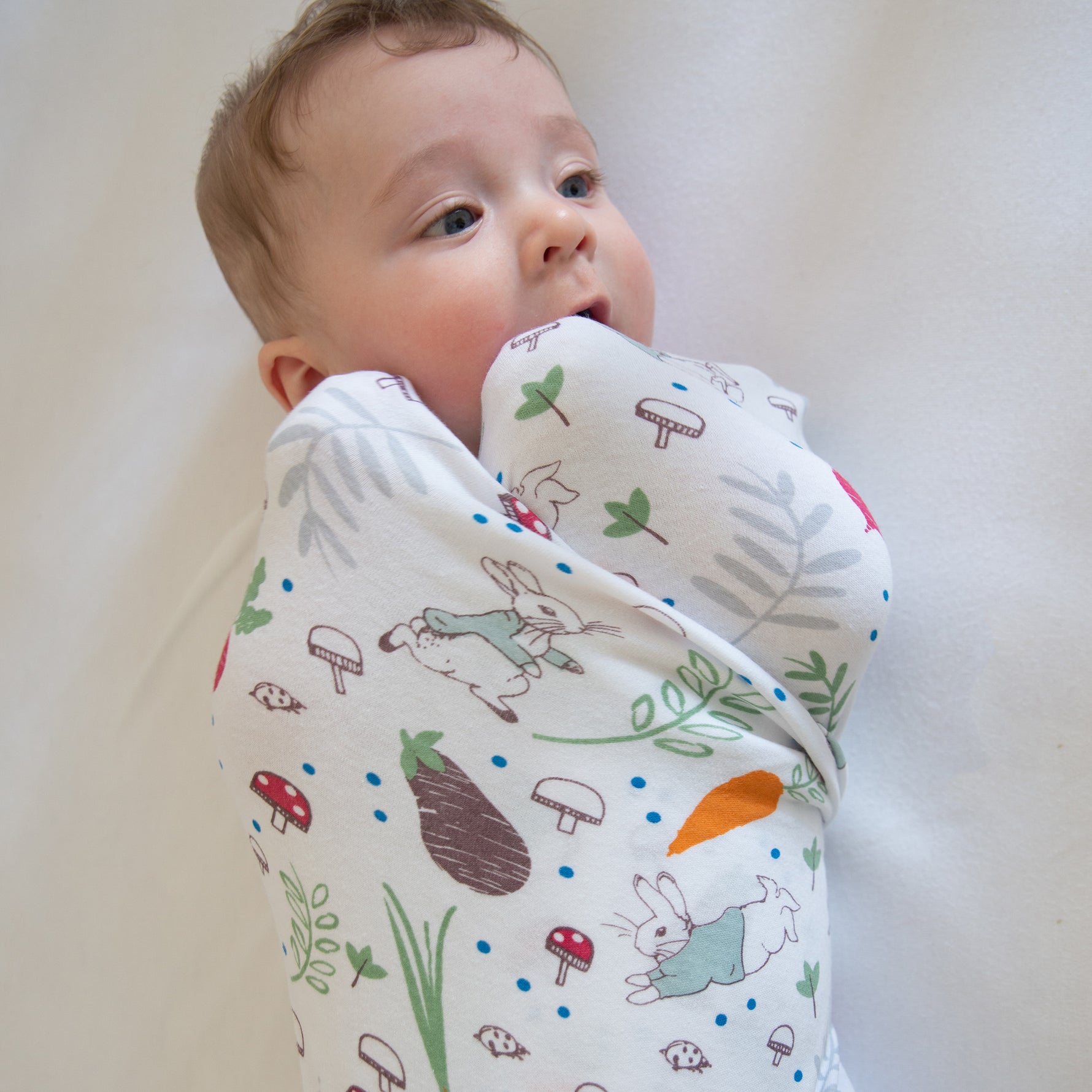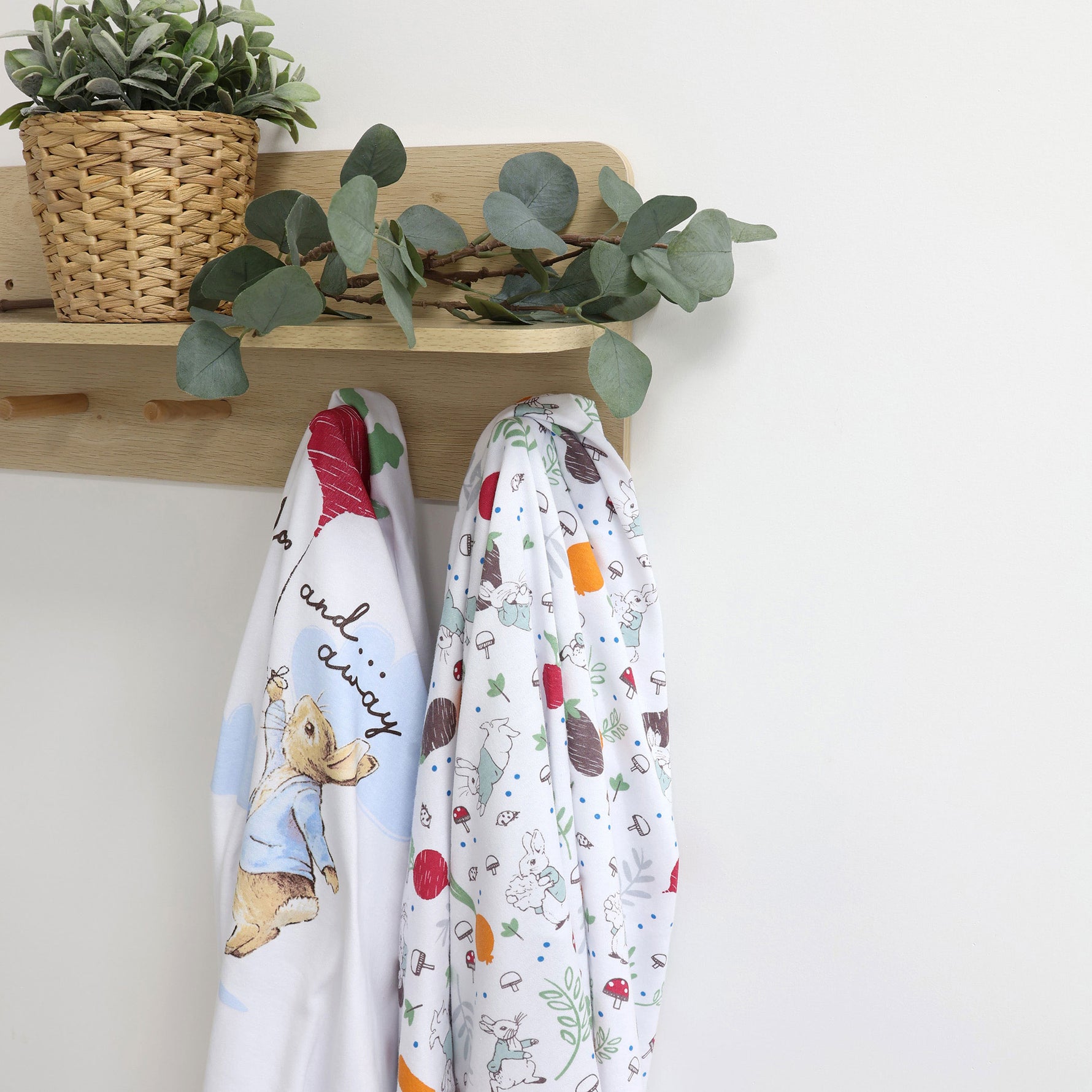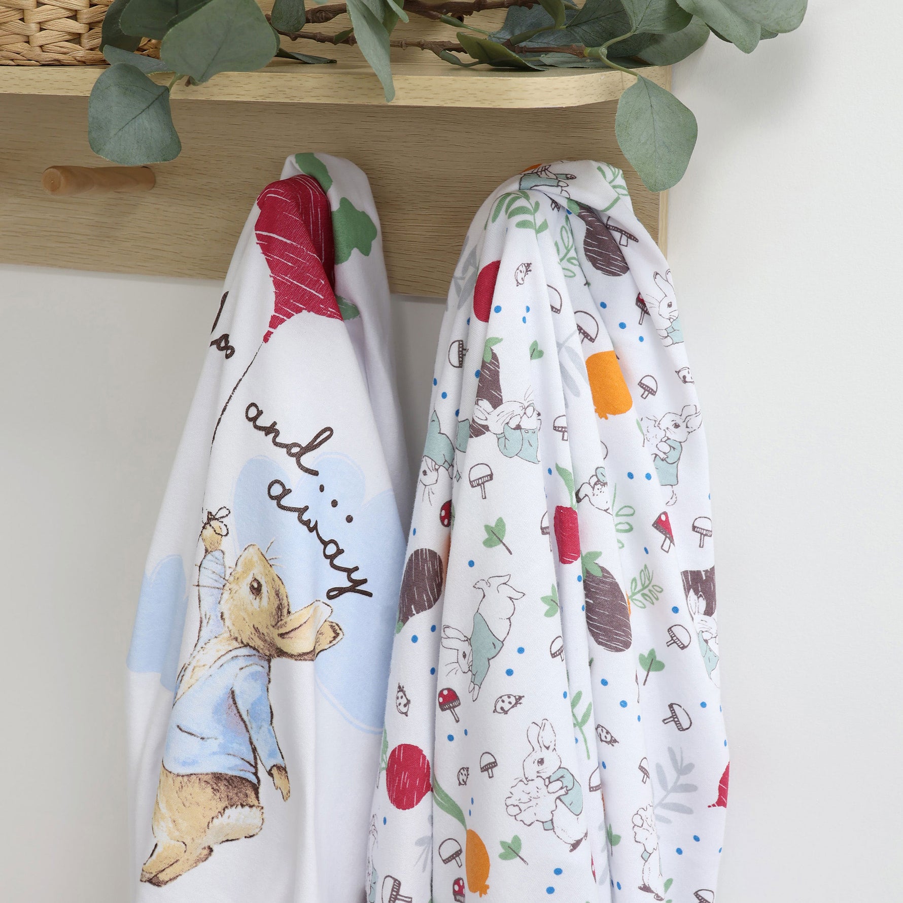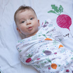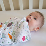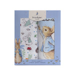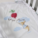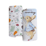 A handy pack of two printed very soft wraps is a must-have for any nursery. This design features a colourful Peter Rabbit's veggie garden printed on crisp white base.