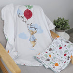 From the classic Beatrix Potter books comes this sweet and adorable collection. Peter Rabbit has a heart-warming effect on anyone who lays eyes on this lovable character. The adventures of Peter Rabbit and his friends, inspired by Beatrix Potter’s love of nature, continue to delight generations of children around the world. Good night to all little bunnies everywhere! The versatile cotton jersey wrap is so soft and gentle next to baby's skin & is perfect for swaddling, cover up or to use as a light blanket or burp cloth.