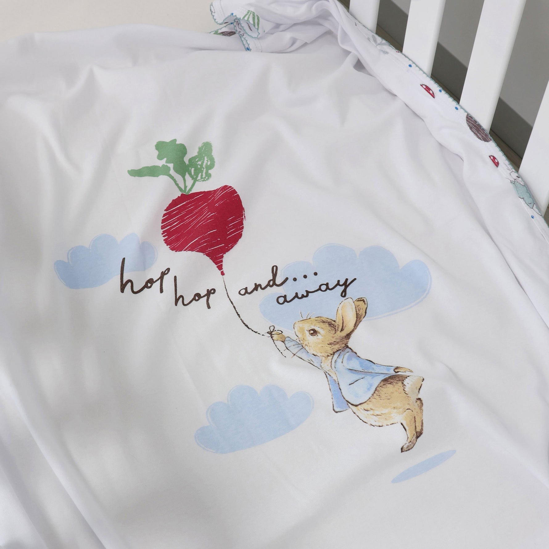 • Features the lovable and sweet Peter Rabbit and a charming  all over print of Peter's  veggie garden.