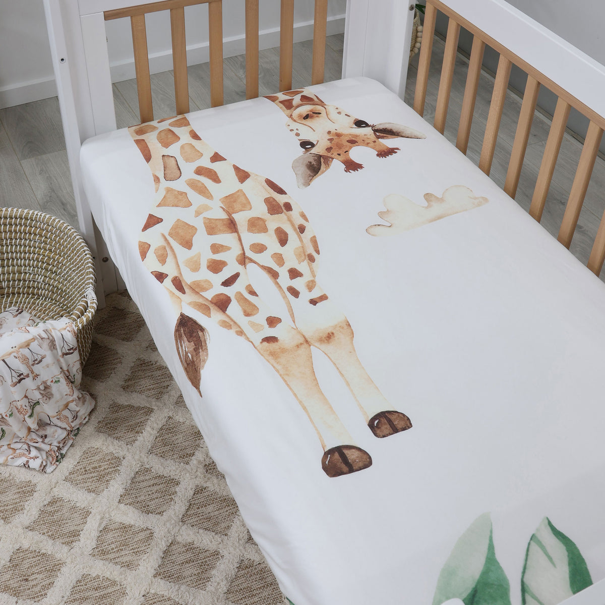Welcome to a world of wonder with our Adventure Bamboo Baby Nursery Collection! Transform your little one's space into a vibrant tropical jungle filled with the enchanting spirit of watercolour-illustrated giraffes and elephants.
