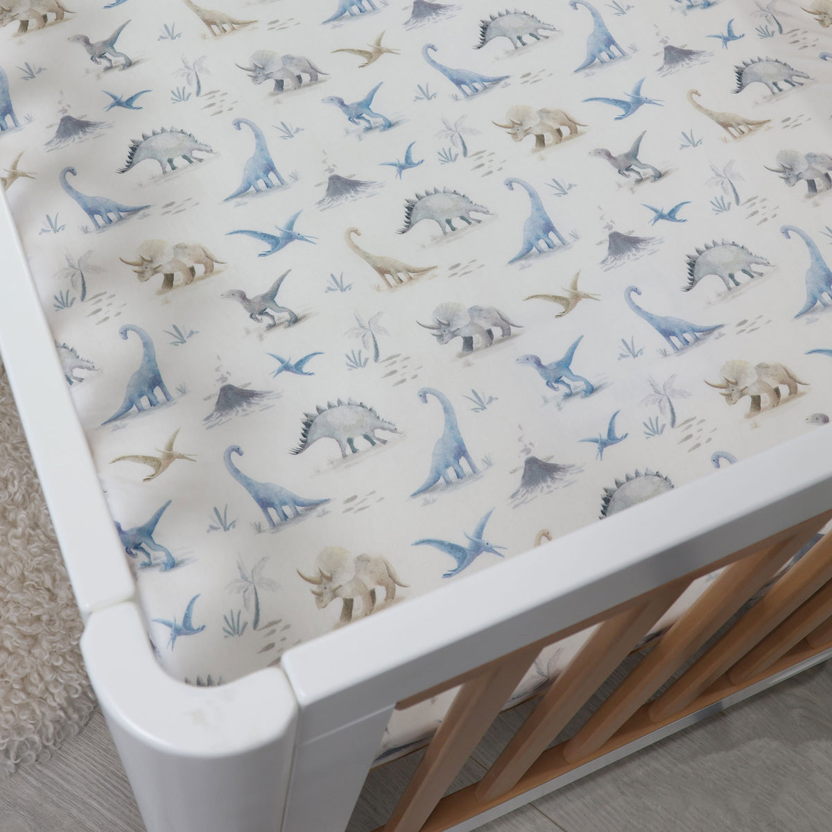 Transform your baby’s nursery into a whimsical prehistoric adventure with our enchanting Jurassic Nursery Collection. Featuring charming watercolour illustrated dinosaurs in soothing blue and earthy tones, this collection brings playful imagination to life, while ensuring a calming space for your little one to grow and enjoy. Each piece is designed to spark joy and curiosity, making bedtime a journey through a gentle world of Dino dreams. Let your child explore the magic of their imagination with our delightful and serene décor that grows with them!