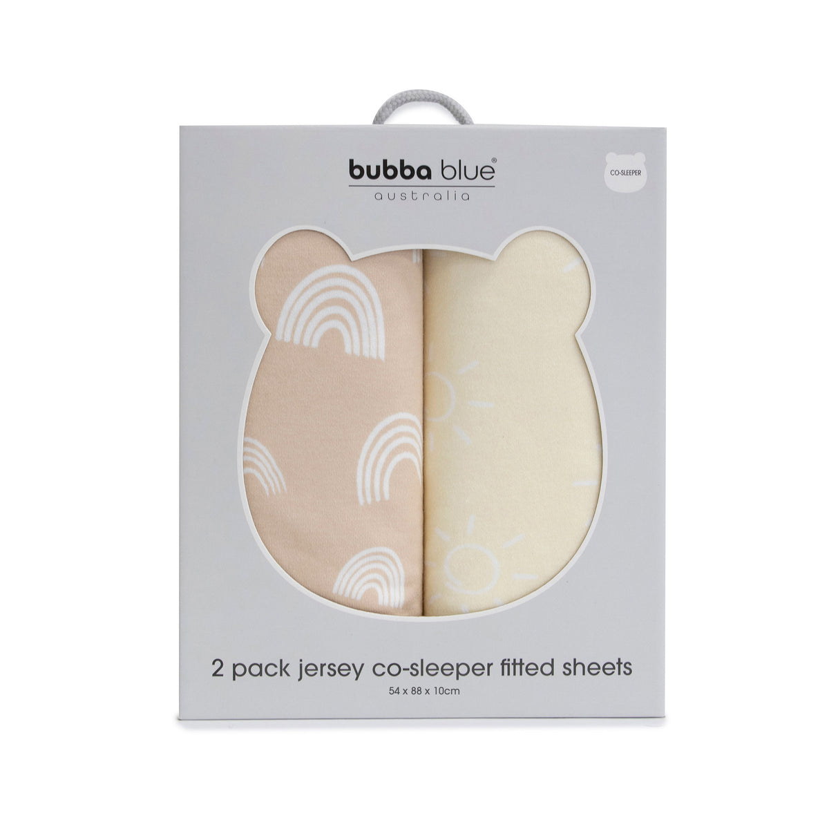 These gorgeous fitted co-sleeper sheets from the Bubba Blue Nordic Collection are made from soft jersey for comfort and feature elasticized edges for a snug fit.