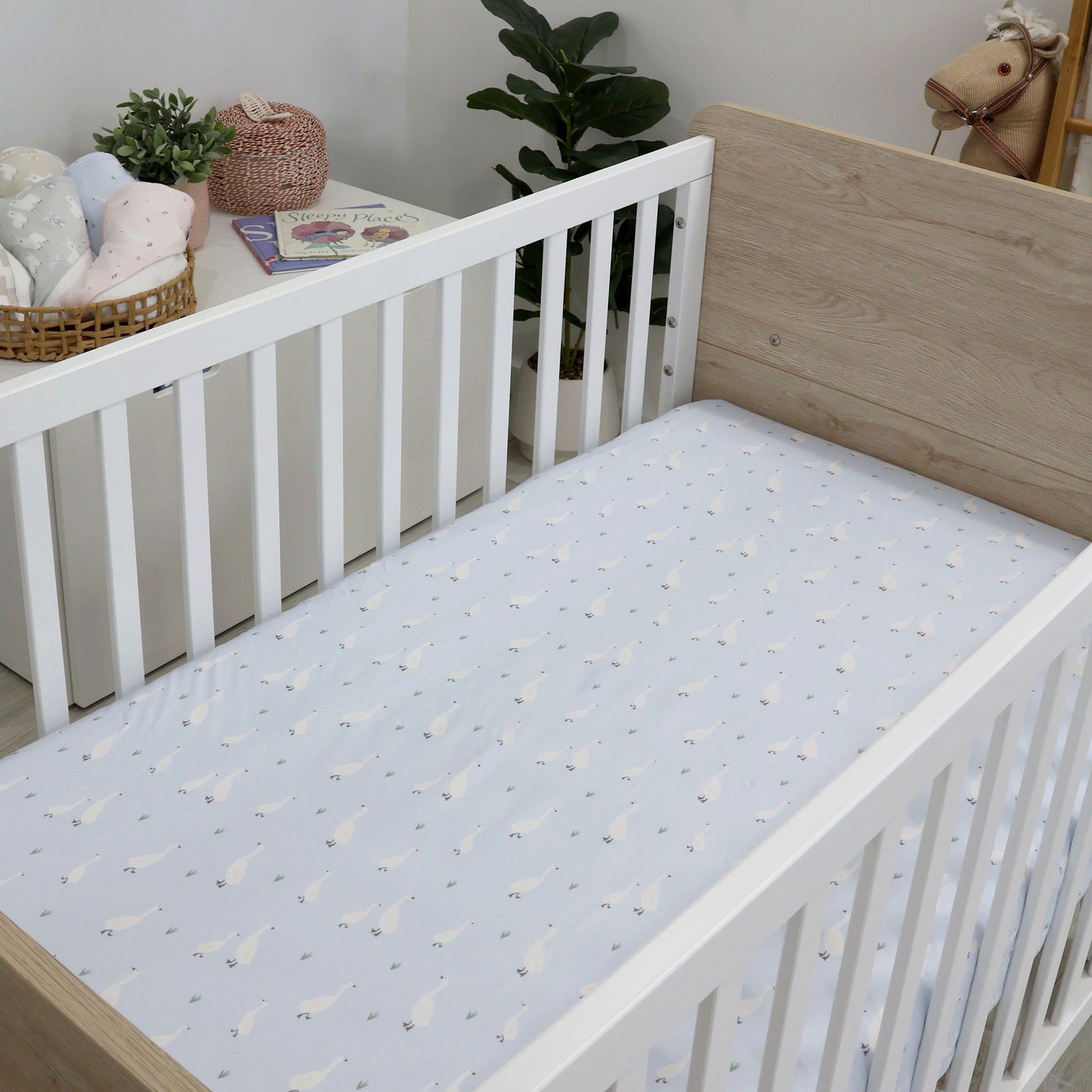 Transform your little one's nursery into a serene retreat with our enchanting provincial-style collection, featuring charming geese, playful llamas and a classic gingham style check. From swaddles to cot sheets, our range adds a touch of rustic elegance and promotes a peaceful environment with it’s pastel colour palette. Embrace the charm of countryside living and create a nurturing haven for your little one!