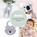 Aussie Animals 'Koala' Bundle - includes 1x 'Koala' Novelty Hooded Bath Towel, 1x 'Koala' Comforter Toy, 1x 'Koala' Silicone Bib, 1x Aussie Animals Bubba Koala Silicone Teething Toy Grey