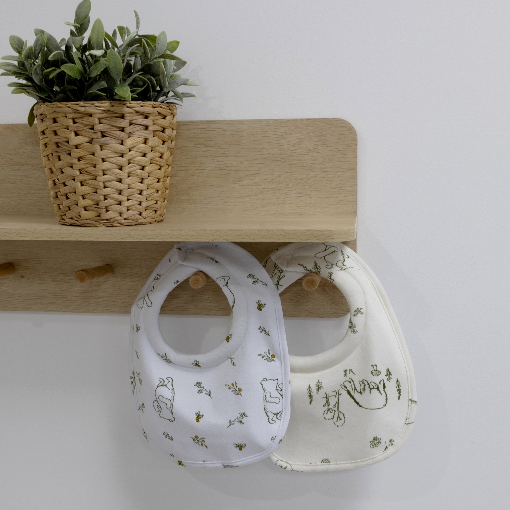 Keep baby mess free with this adorable 2 pack of Classic Pooh dribble bibs. Features a soft jersey print front, waterproof inner and towelling lining.