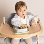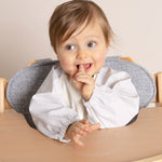 Our stylish feeding smocks are an absolute essential at feeding time to protect baby from mealtime messes. Made from a soft, lightweight and comfortable waterproof polyester with a smooth suede-like underside. This long sleeve smock with elasticised cuffs will help protect clothing underneath. The velcro neckline adjusts easily to suit 6m-2 years. The front pocket will catch any missed foods.  This stylish feeding smock is perfect for mealtimes, baby led weaning, messy play and arts & crafts.