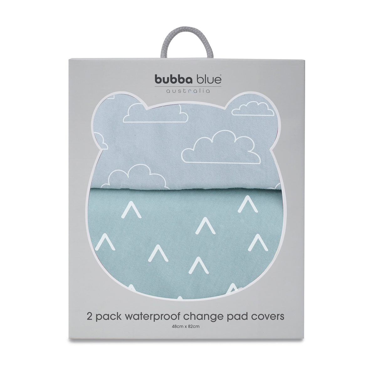 Pack includes one dusty blue cloud design and one mint nordic mountain design change mat cover.