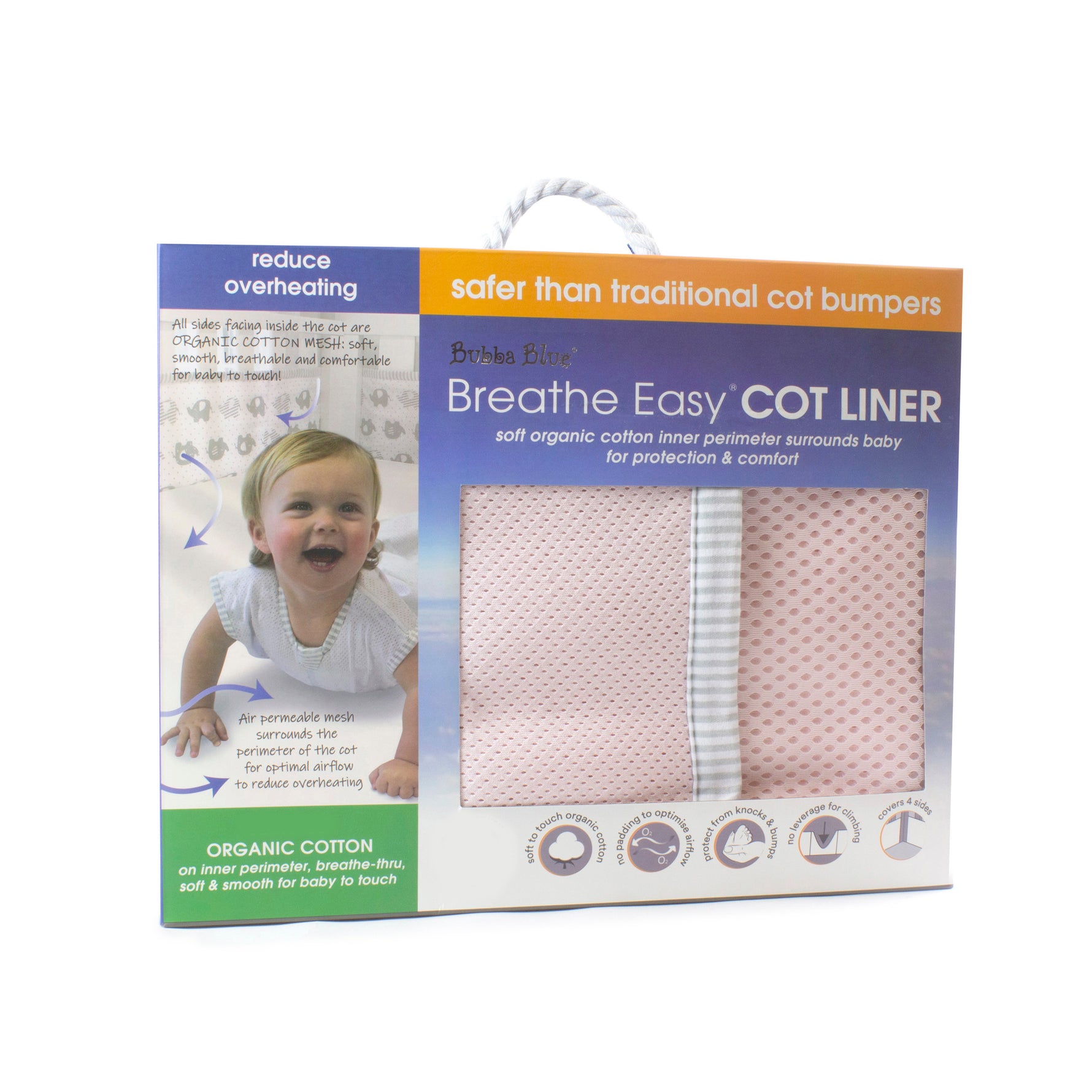 The Bubba Blue Breathe Easy® Cot Liner is the first and the best of its kind. This slimline design uses 3D spacer mesh & an organic cotton mesh to form a taut protective liner around the inside perimeter of the cot.