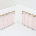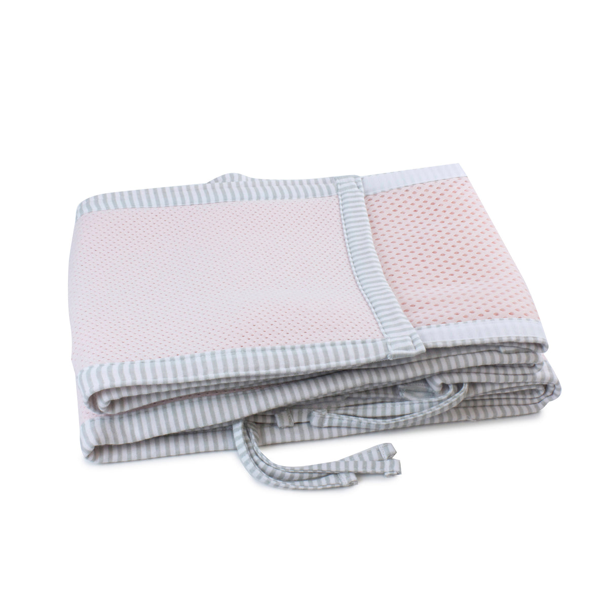 Unlike padded cot bumpers, the Bubba Blue Breathe Easy® Cot Liner allows optimal air to flow through the cot’s mesh. It will keep your little one's limbs and pacifiers safely inside the cot without the risk of restricted airflow. It’s made of lightweight mesh to prevent overheating.