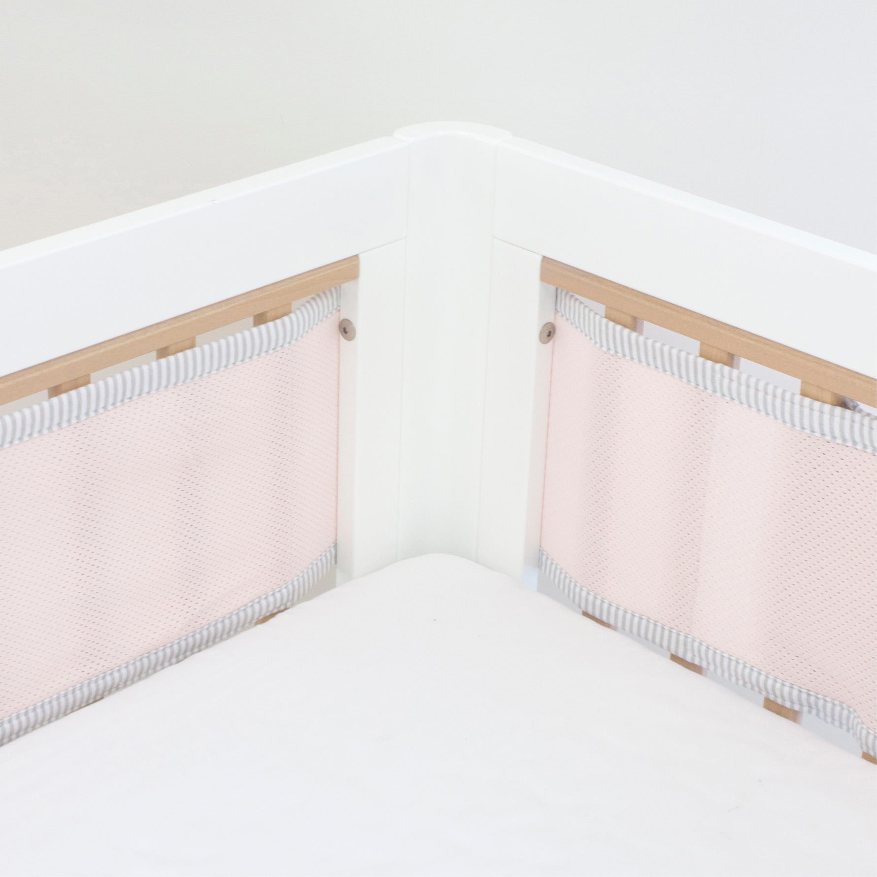 All sides facing inside the cot are Cotton Mesh, so it's soft, smooth and comfortable for baby to touch!