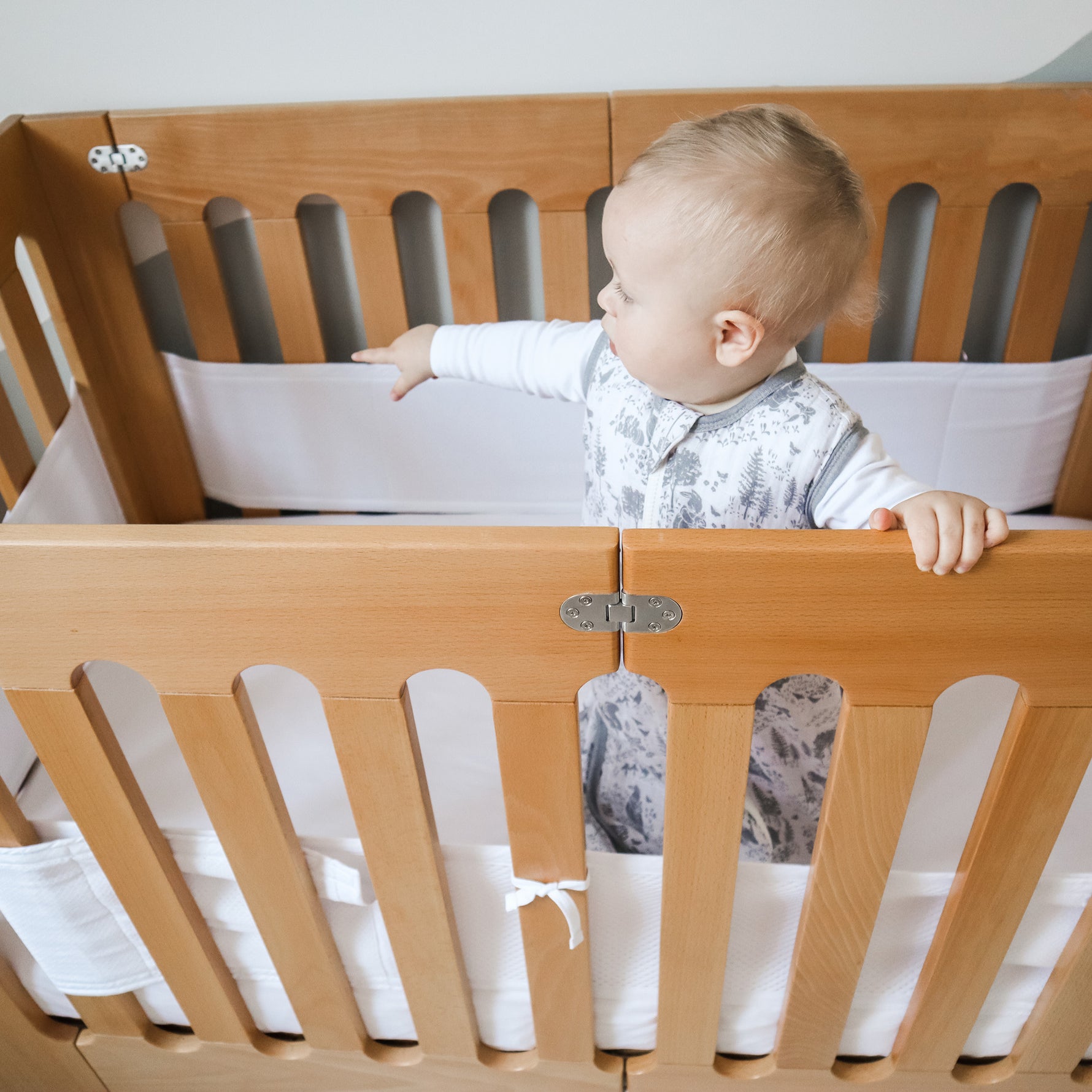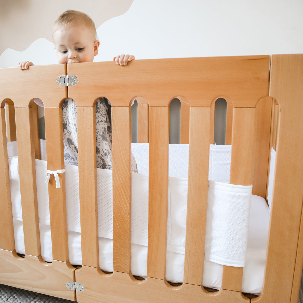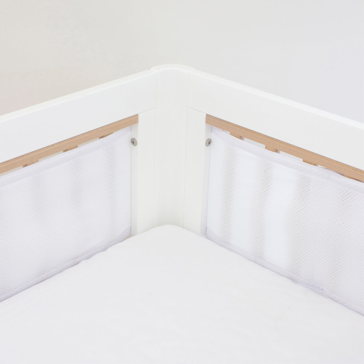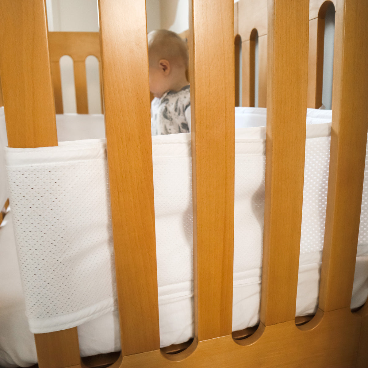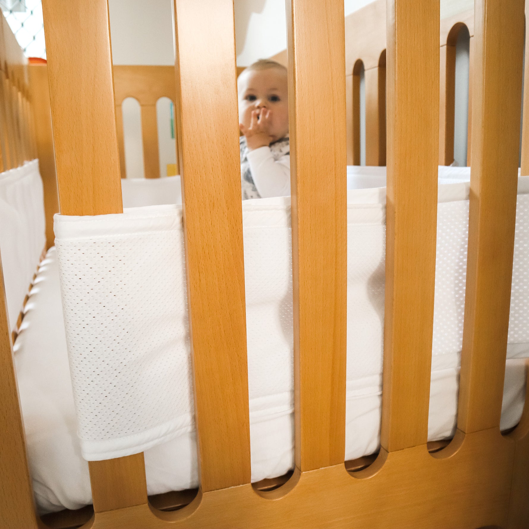 The Bubba Blue Breathe Easy® Cot Liner is the first and the best of its kind. This slimline design uses a 3D spacer mesh & an organic cotton mesh to form a taut protective liner around the inside perimeter of the cot.