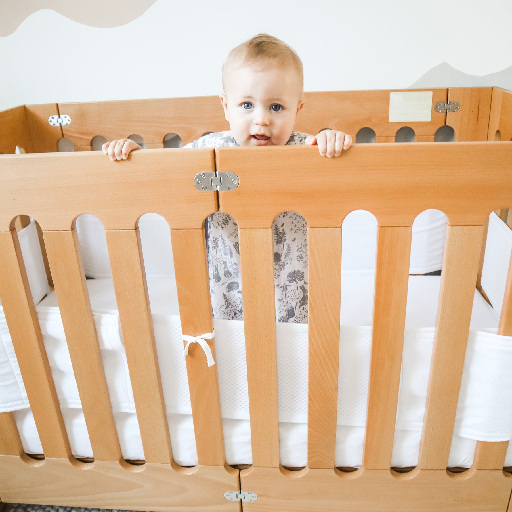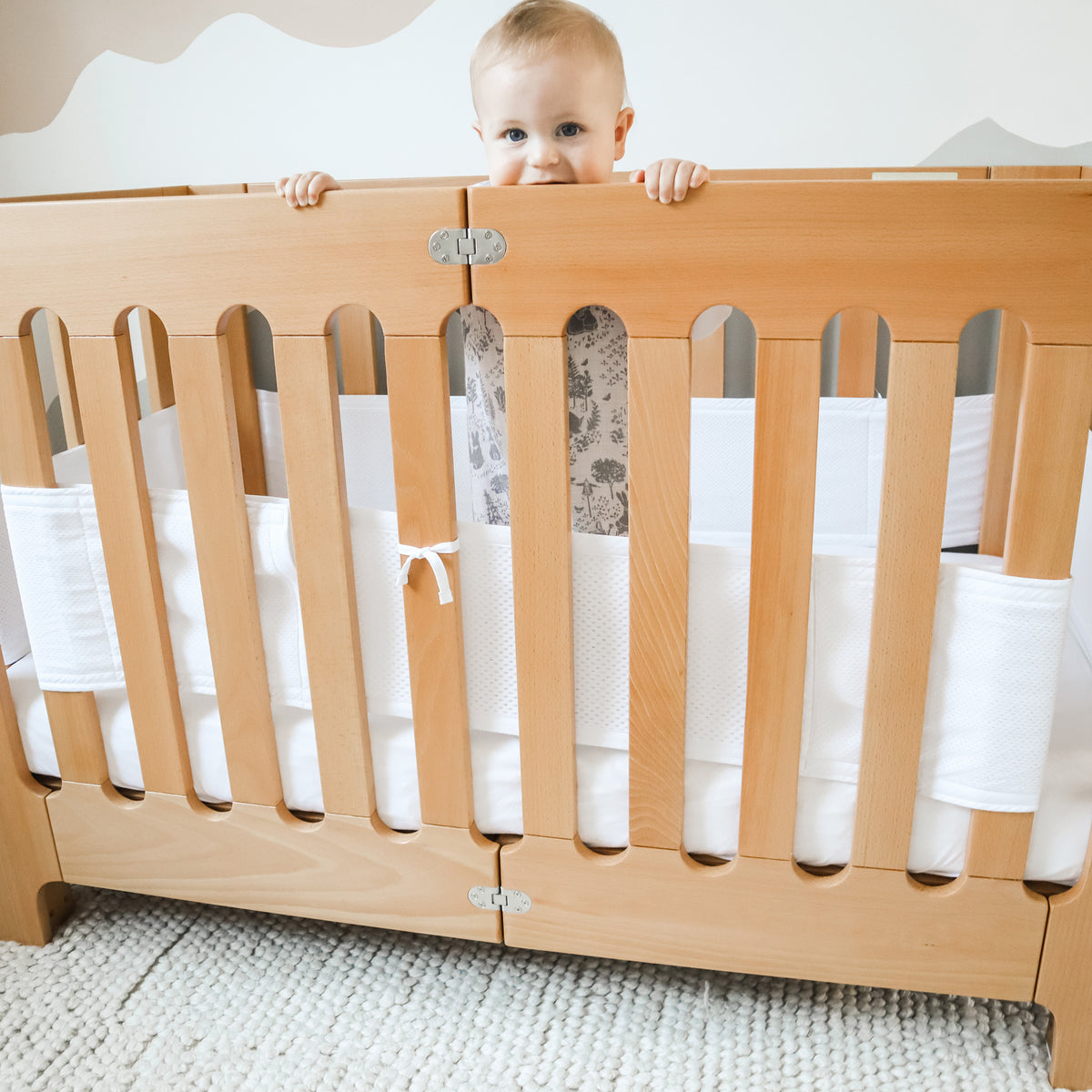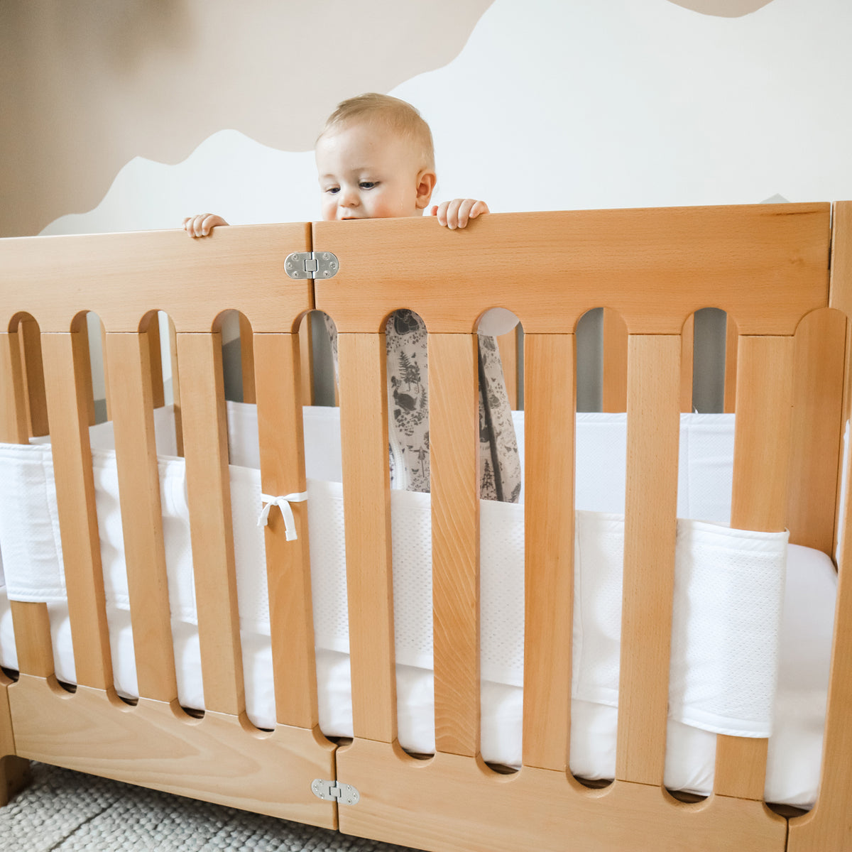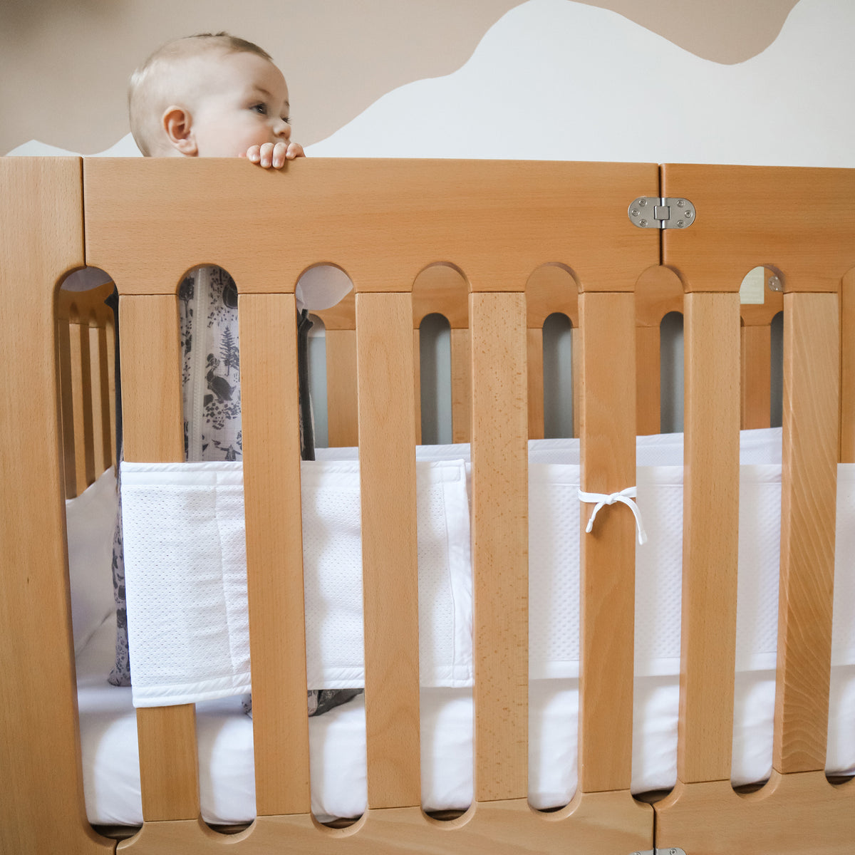 The Bubba Blue Breathe Easy® Cot Liner is the first and the best of its kind. This slimline design uses a 3D spacer mesh & an organic cotton mesh to form a taut protective liner around the inside perimeter of the cot.