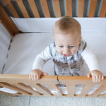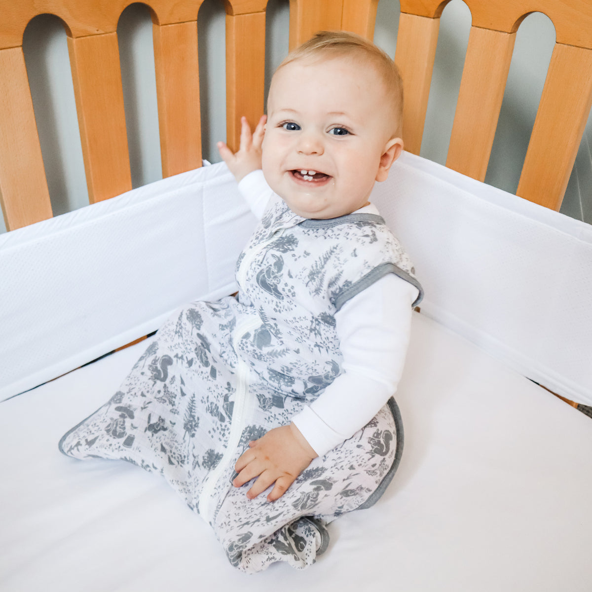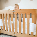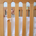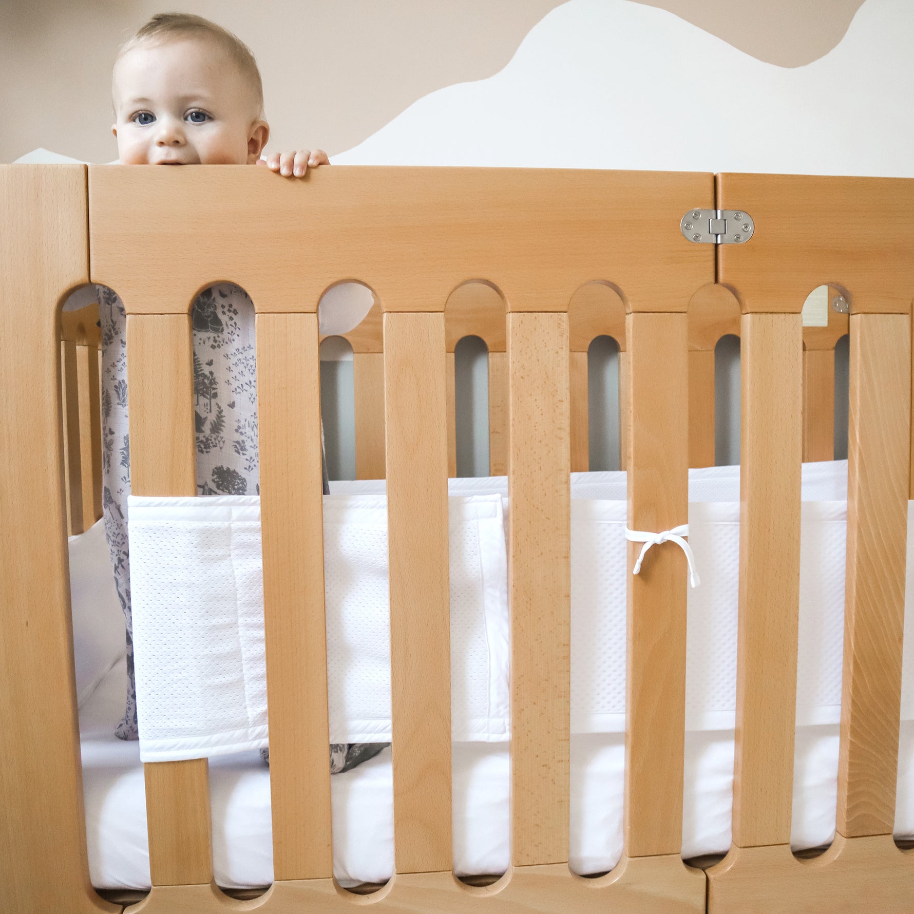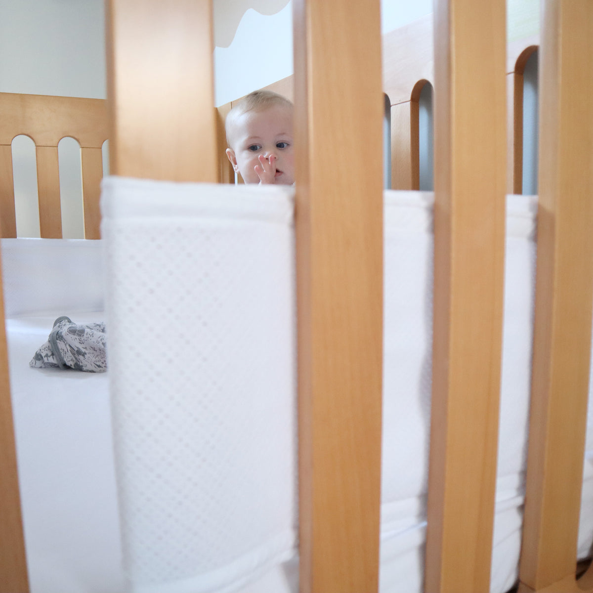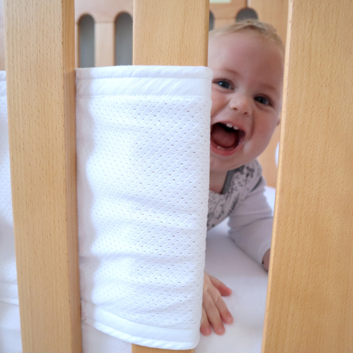 Unlike padded cot bumpers, the Bubba Blue Breathe Easy® Cot Liner allows optimal air to flow through the cot’s mesh. It will keep your little one's limbs and pacifiers safely inside the cot without the risk of restricted airflow.