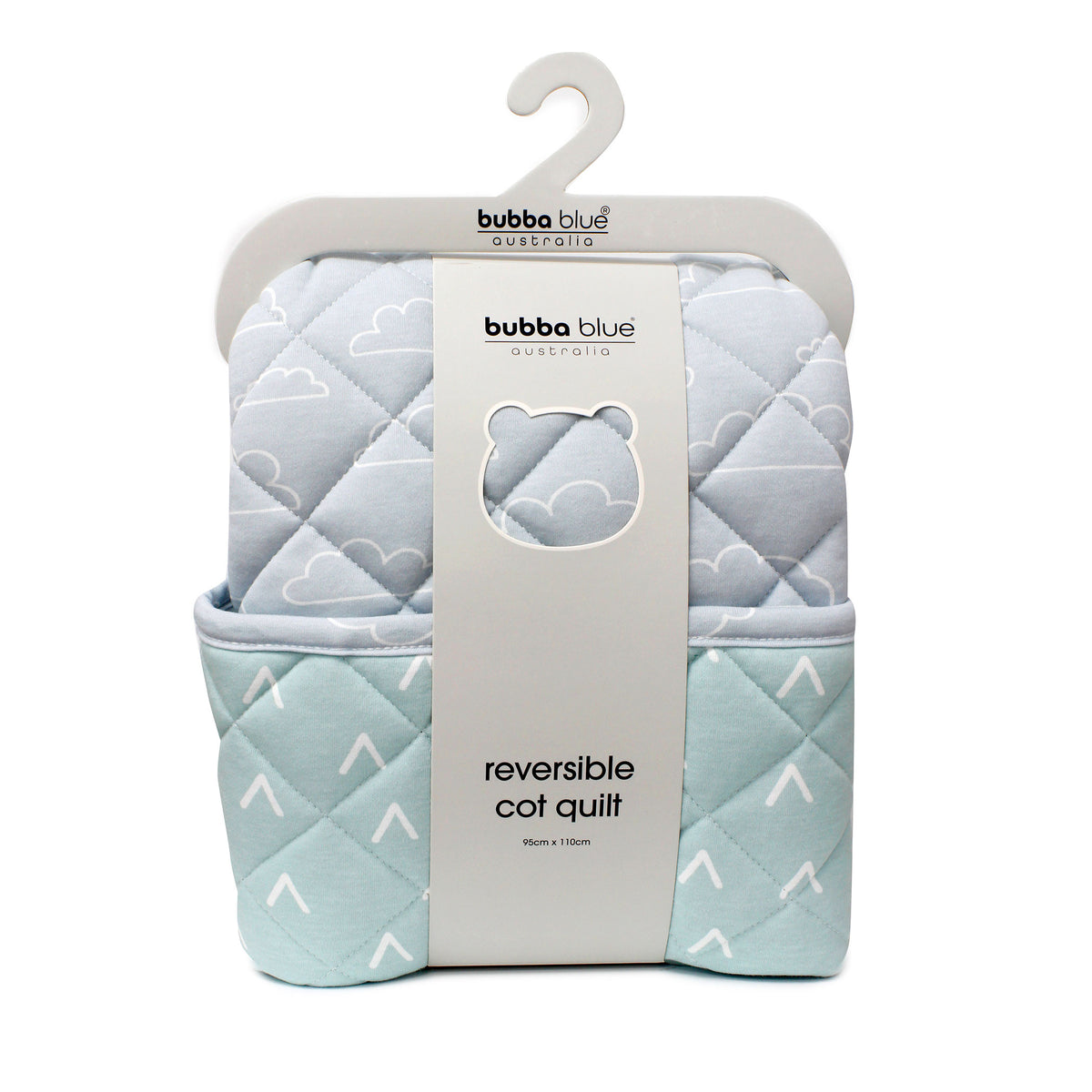 Nordic Reversible Cot Quilt - Dusty Sky/Mint