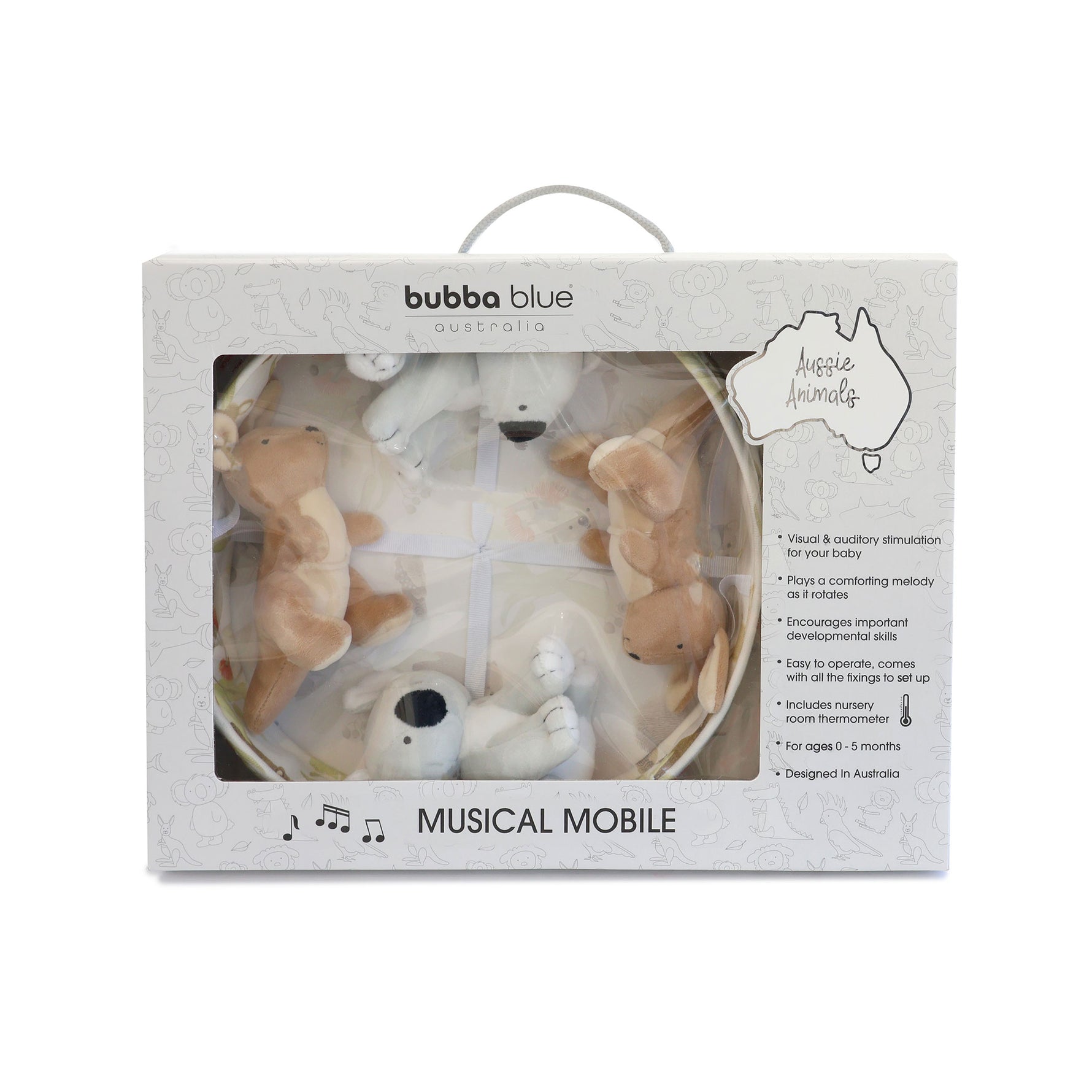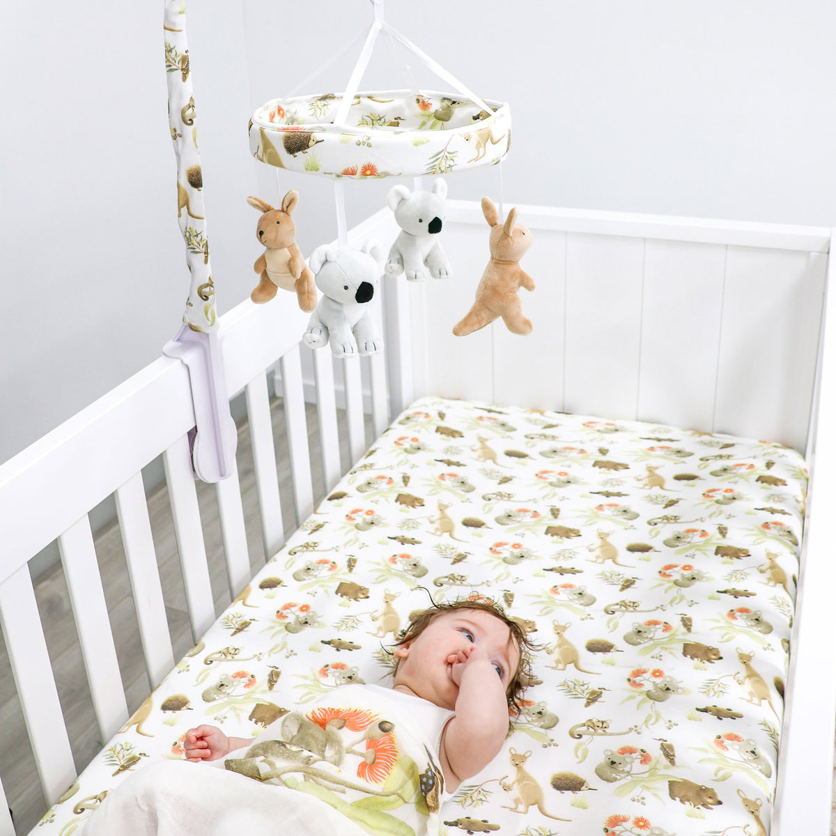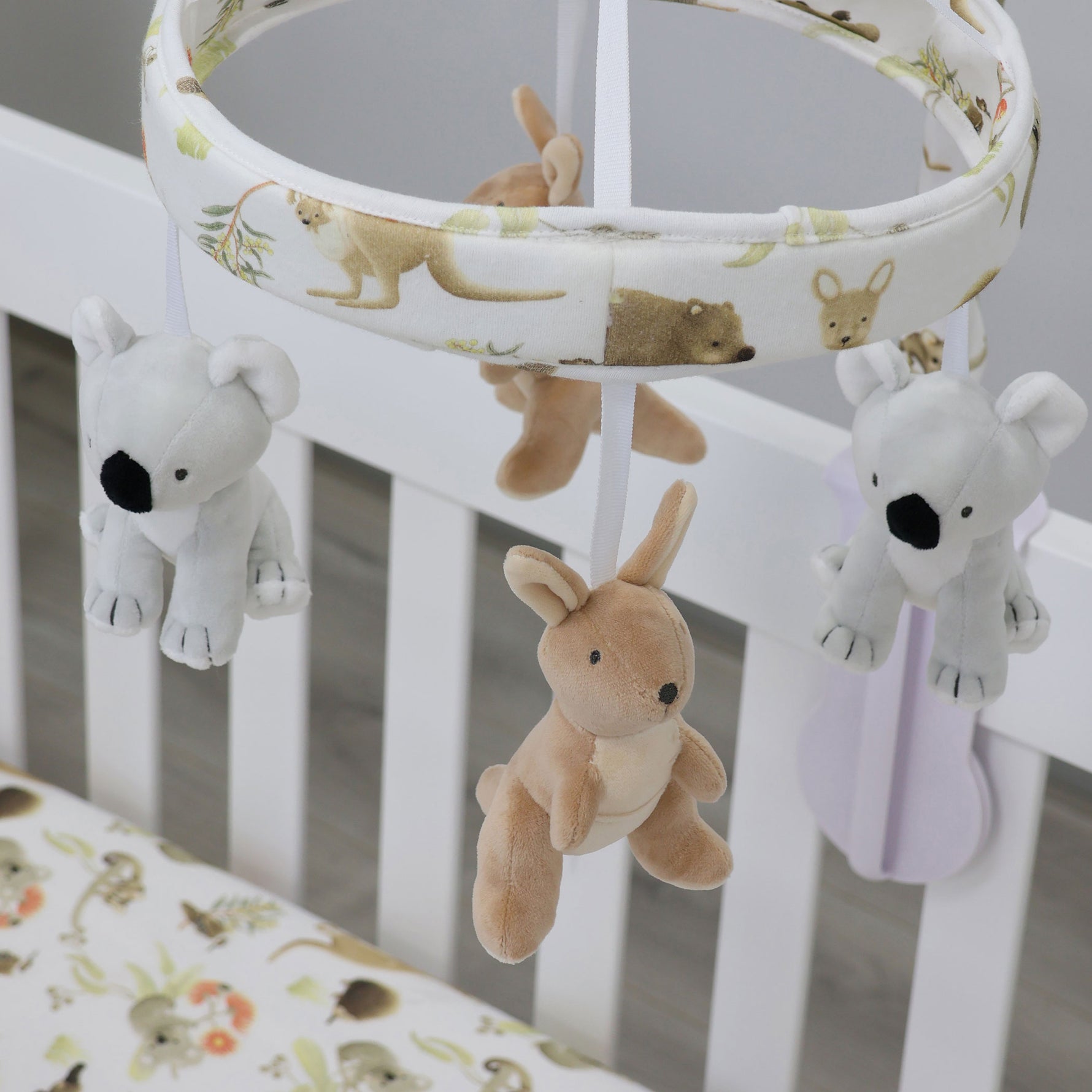 Gorgeous musical mobile featuring your favourite Aussie Animals is sure to delight little ones.
