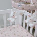 In soft pink colour palette, this sweet design will suit your precious baby nursery, making it a delightful and magical space. With a wind up mechanism, this musical mobile will entertain and slowly drift your baby into a dreamy and relaxing sleep.