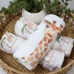 Welcome to a world of wonder with our Adventure Bamboo Baby Nursery Collection! Transform your little one's space into a vibrant tropical jungle filled with the enchanting spirit of watercolour-illustrated giraffes and elephants.