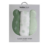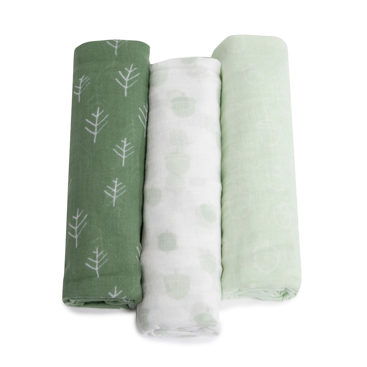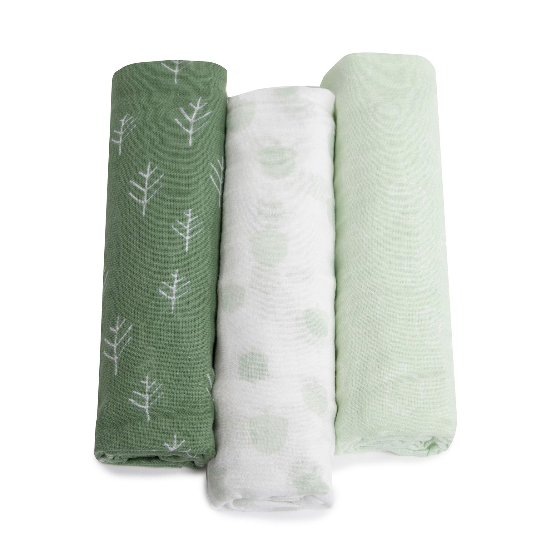 Nordic 3pk Muslin Wraps Avocado/Forest