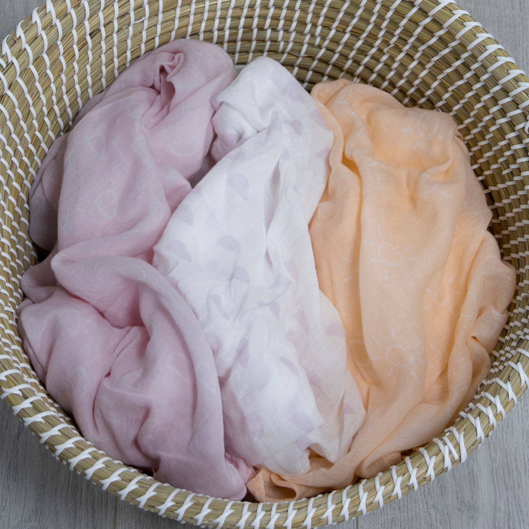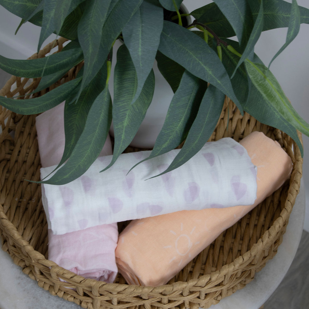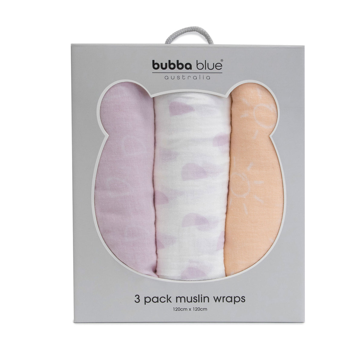 Nordic 3pk Muslin Wraps Peach/Lilac