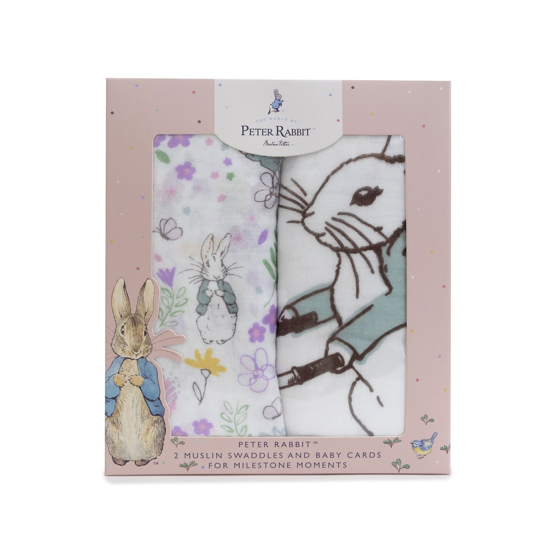 Peter Rabbit 'New Adventure' 2PK Muslin Wraps & Milestone Cards Set - Pink