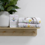 • Features sweet and adorable Flopsy Bunny and a charming all over print of her pretty floral garden on the crisp white base