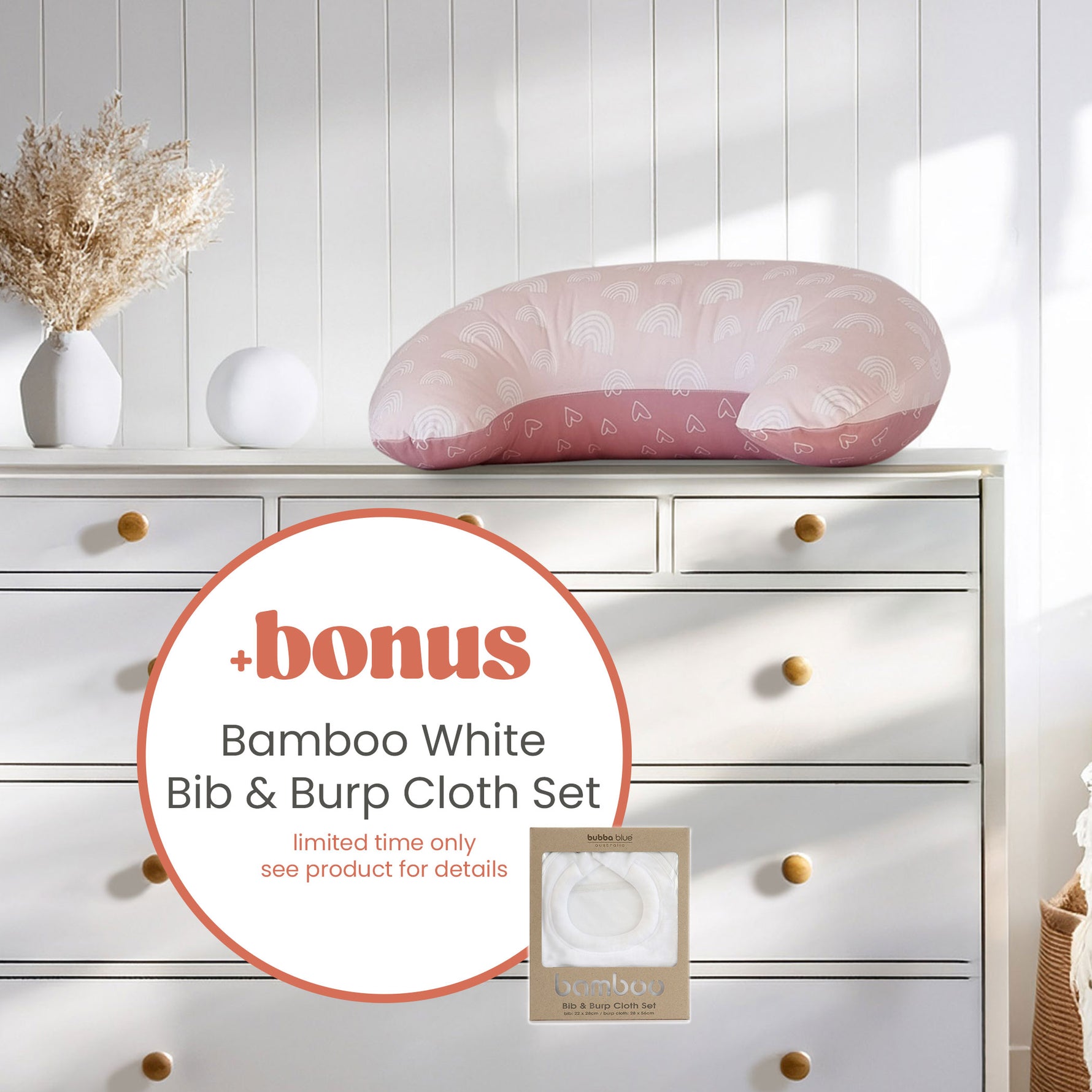 Nordic Nursing Pillow Berry/Rose Plus FREE Bamboo Bib & Burp Cloth Set