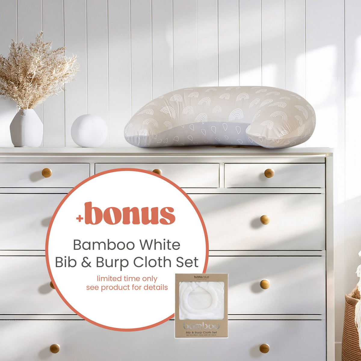 Nordic Nursing Pillow Sand/Grey Plus FREE Bamboo Bib & Burp Cloth Set