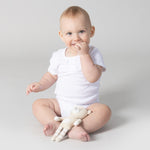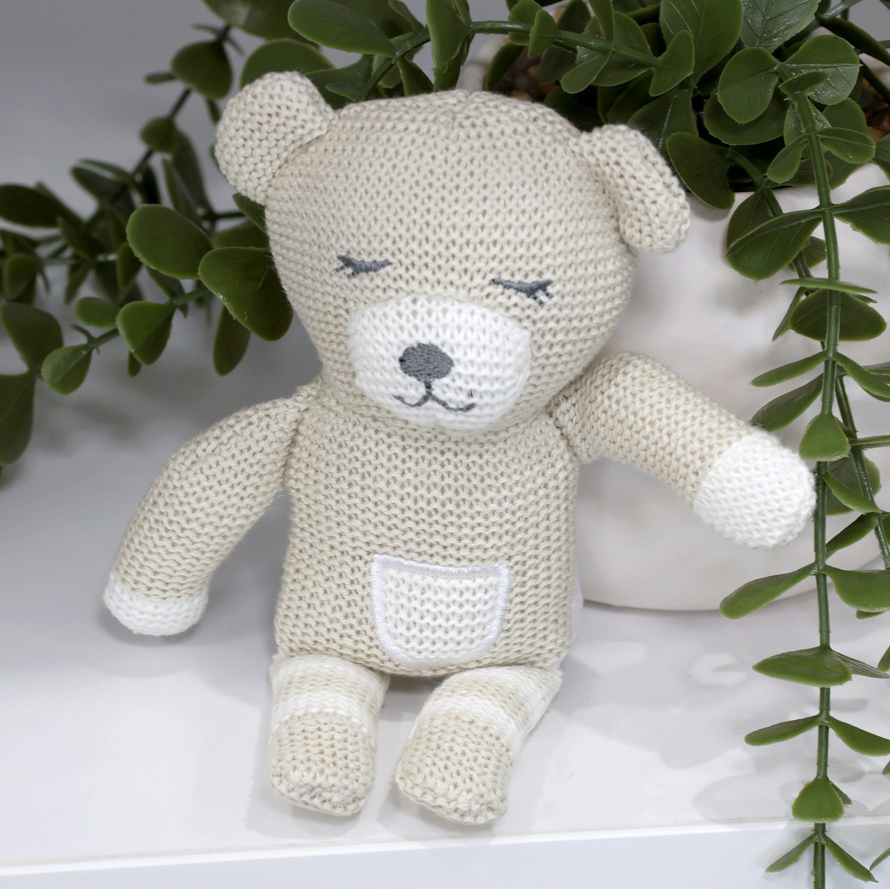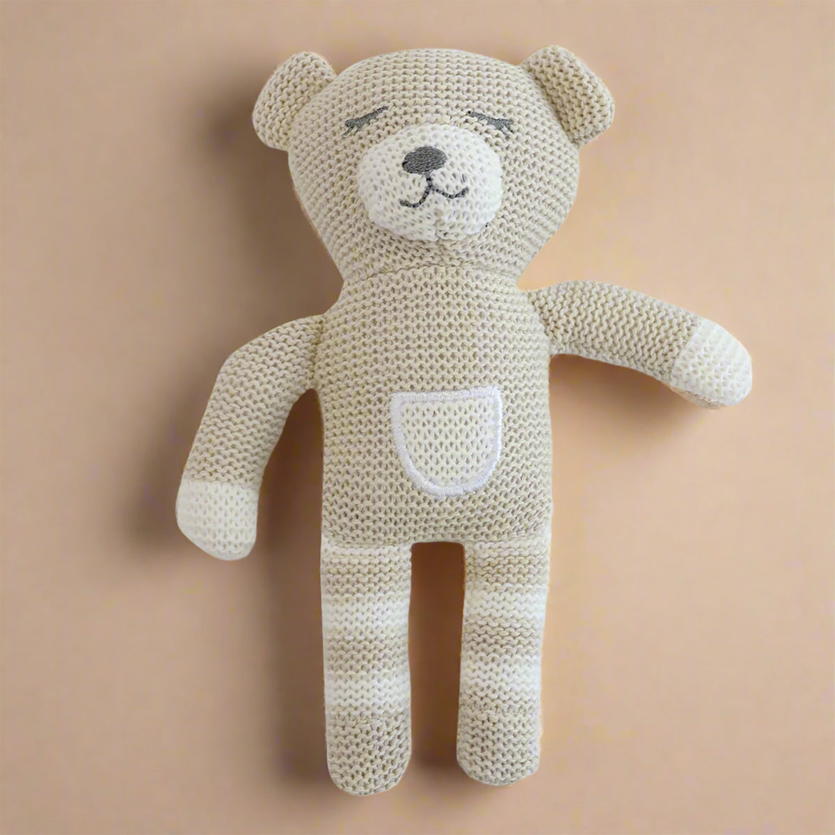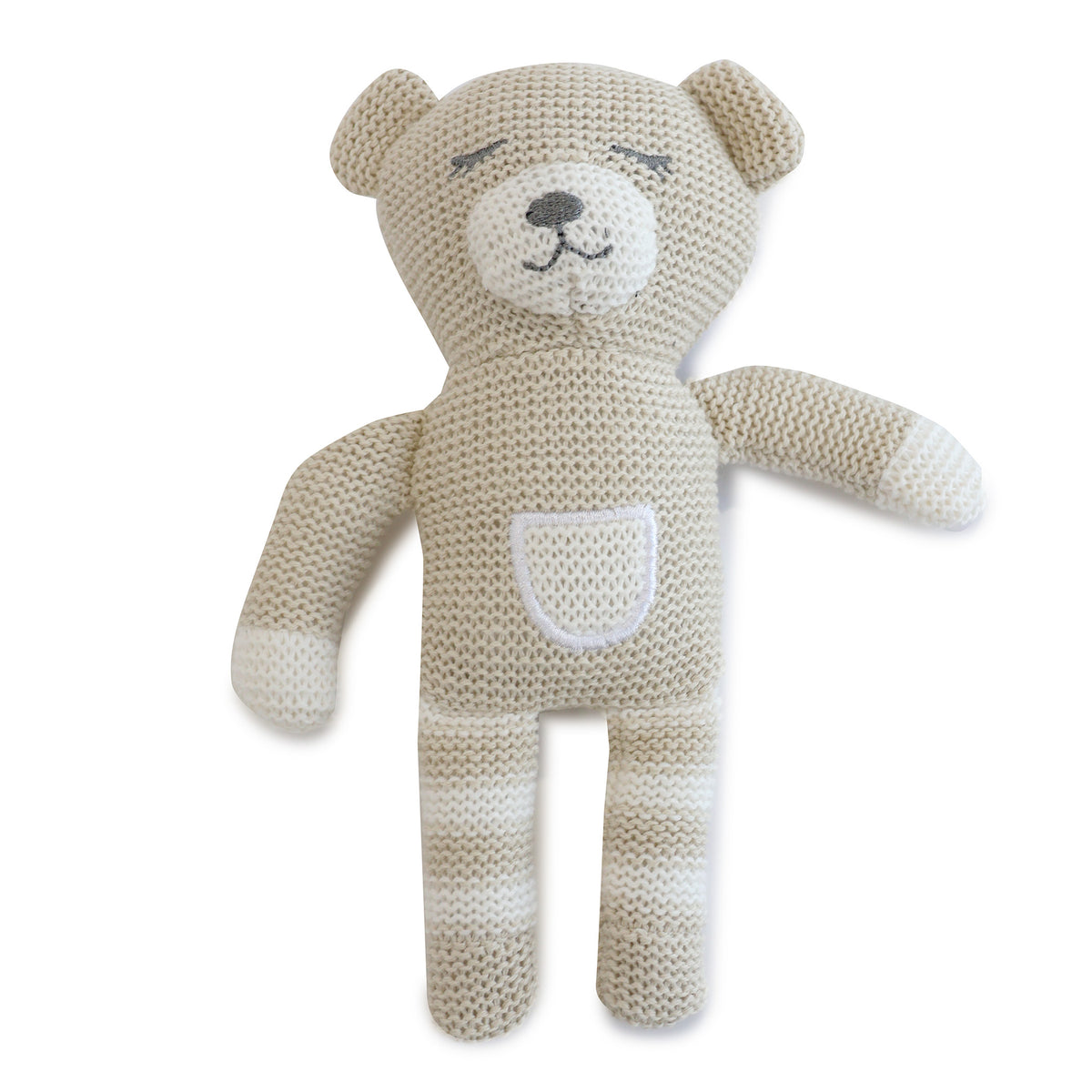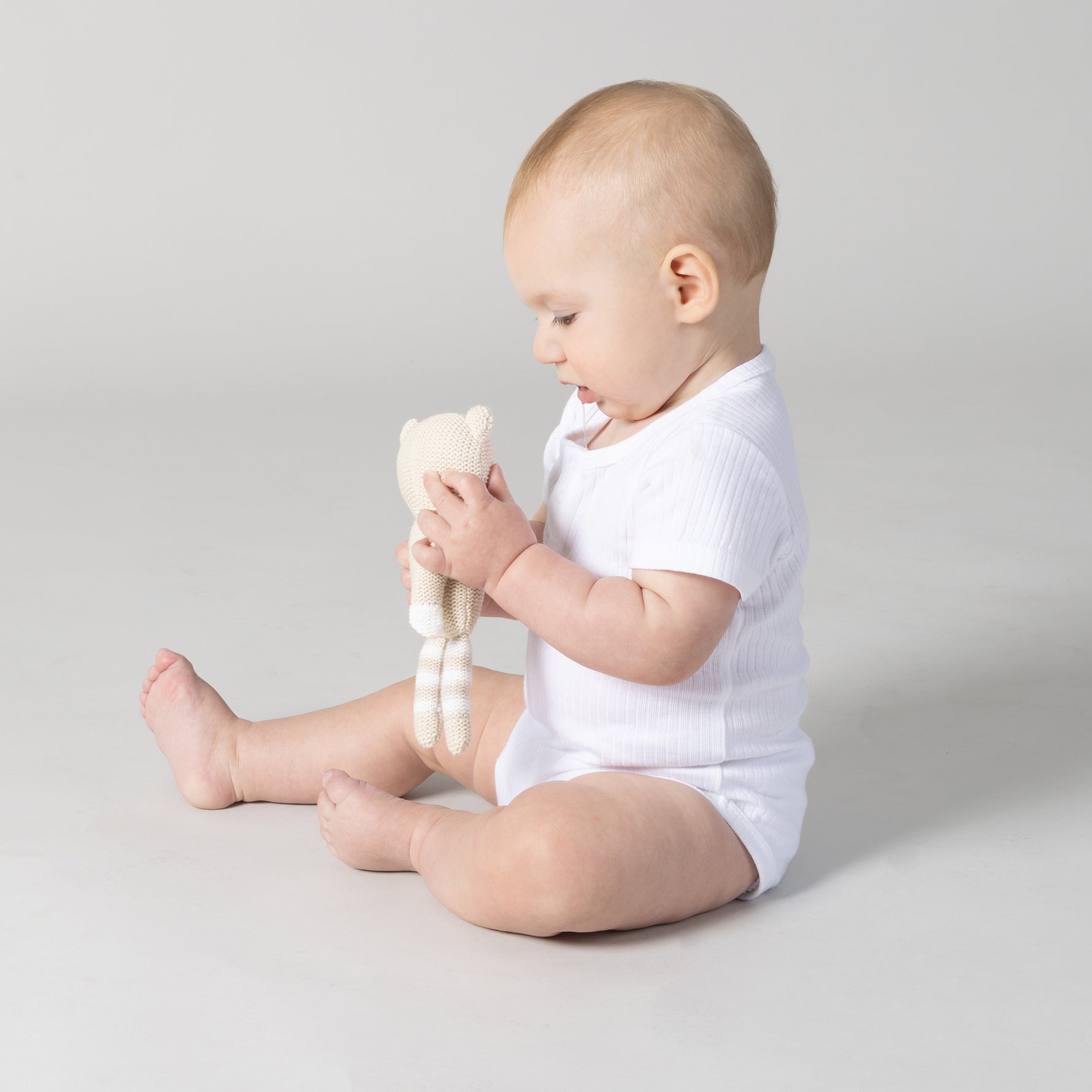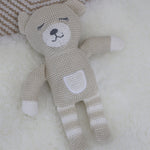 Little ones will delight in our cute knitted bear rattle toy. Crafted with a soft knit texture in a stylish colour palette, it features a gentle rattle sound to stimulate your child’s senses. Long arms and legs provide easy grip for little hands.