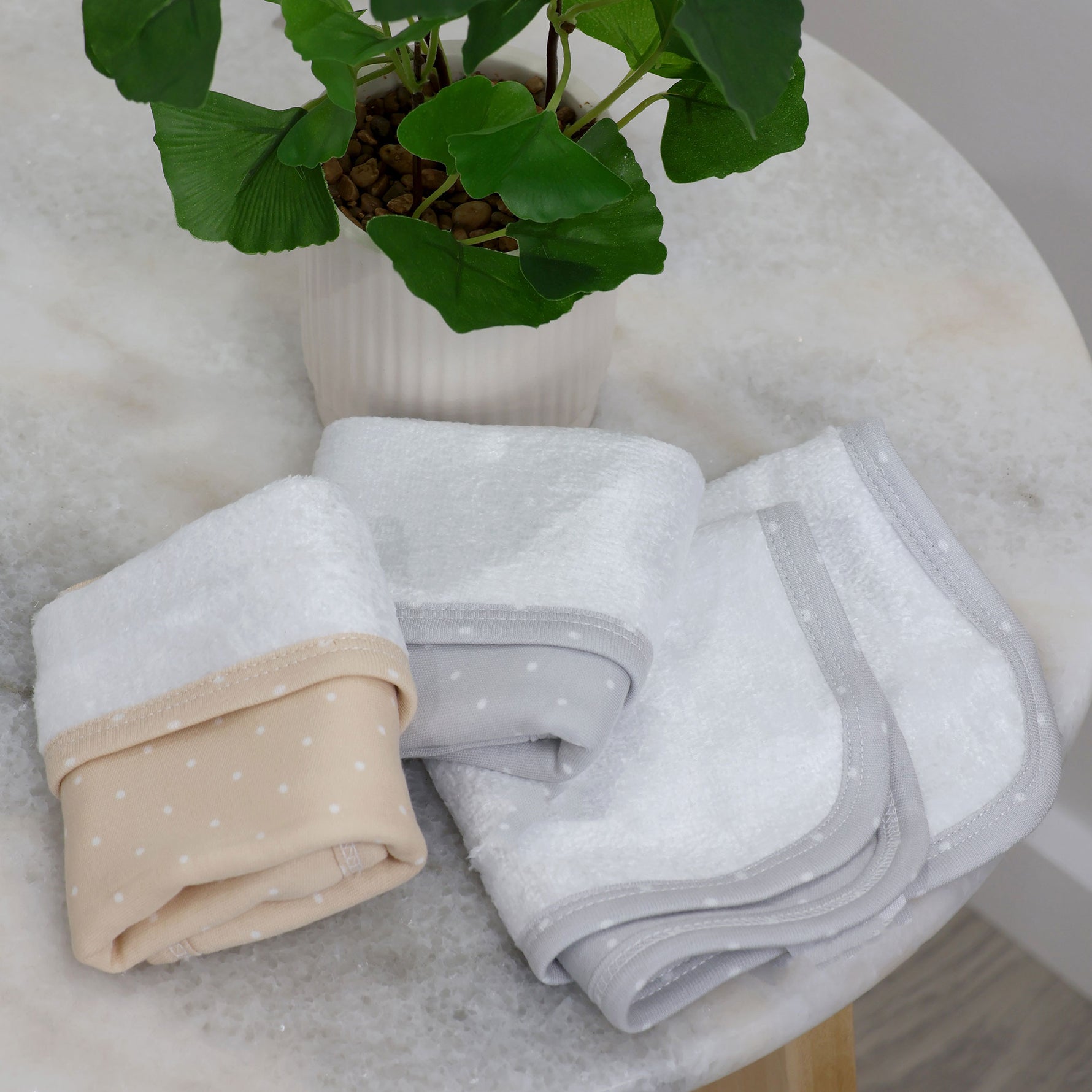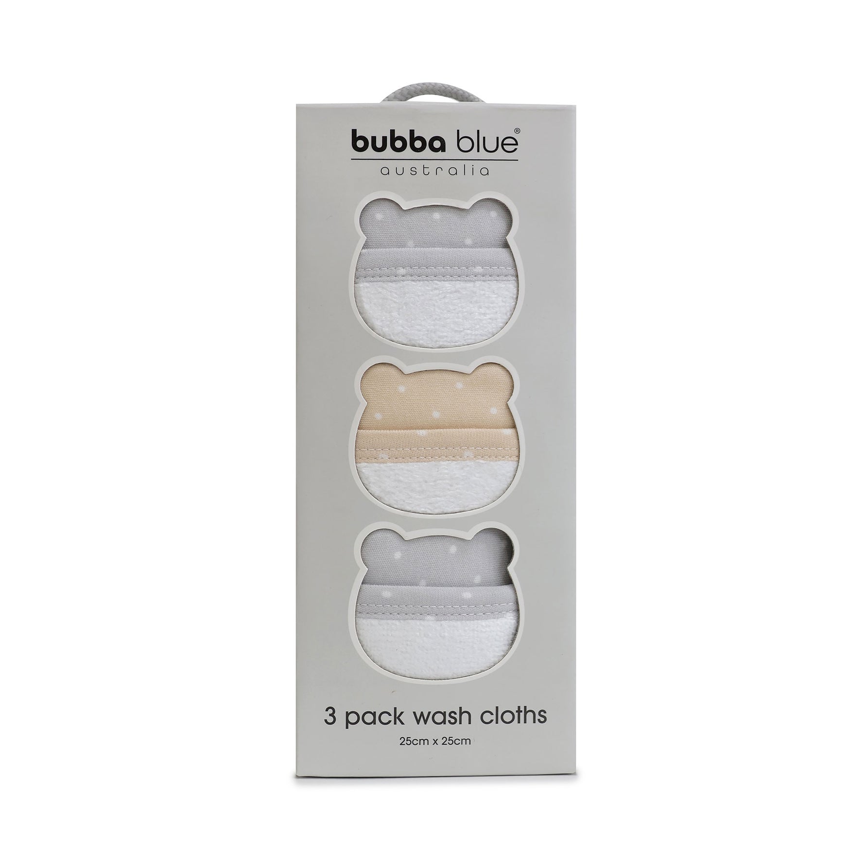 These gorgeous wash cloths from the Bubba Blue Confetti Collection make a cute and practical essential at bath time. Crafted from soft and absorbent towelling and finished with a jersey trim, this set of three baby wash cloths is the ideal bath time accessory. Perfect for use on baby’s delicate skin.