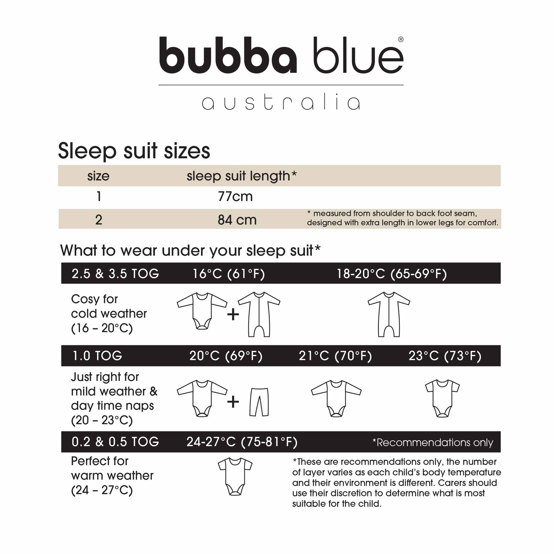 • 2.5 TOG suits nursery room temperatures of 16 - 20˚C