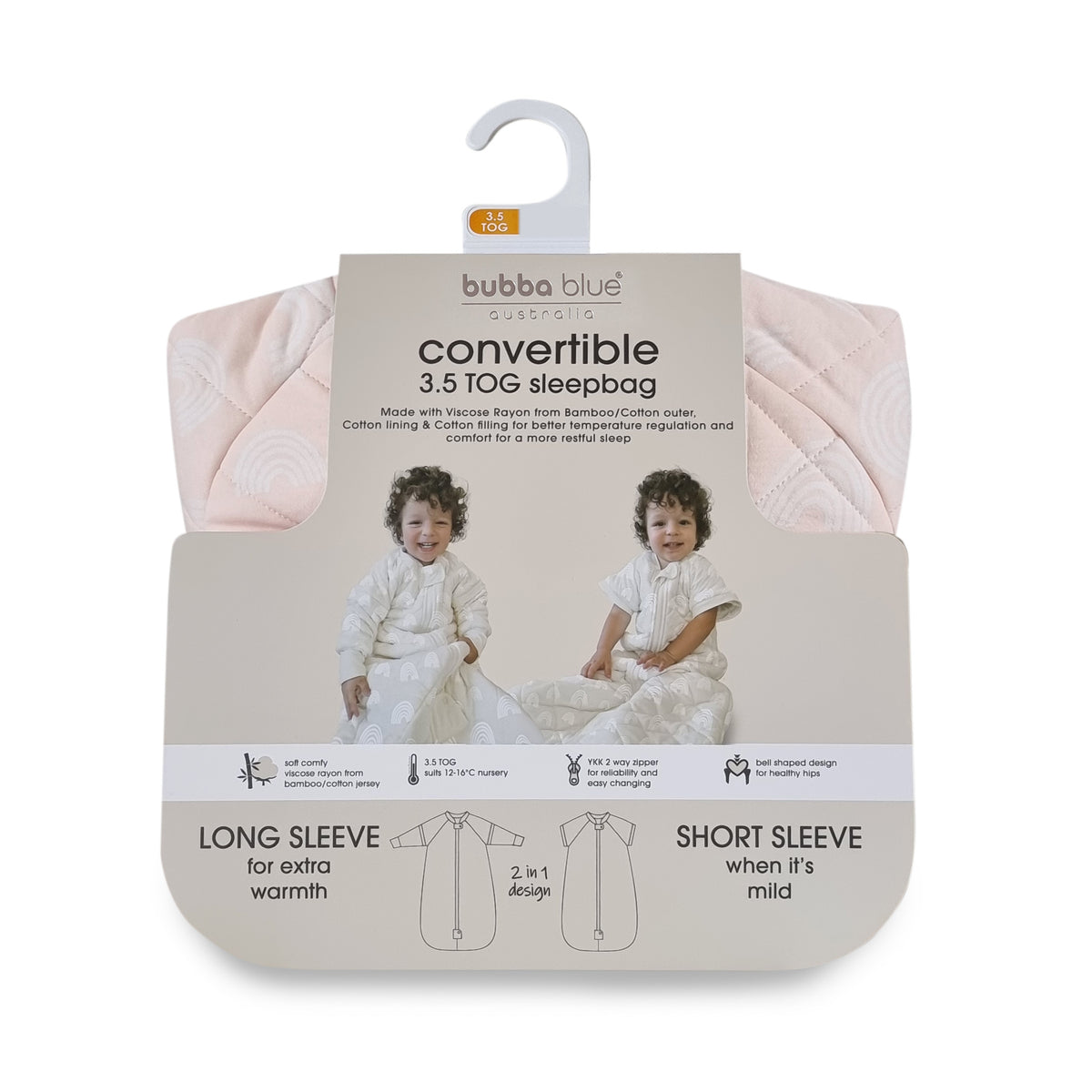 The Bubba Blue Convertible Sleep Bags is a genius solution to use from autumn to spring. The unique patented convertible sleep bag design allows the long sleeves to be zipped off to create a short sleeve sleep bag when temperatures are mild. The sleeves can be zipped on for extra warmth during those cooler days and nights. An ideal trans-seasonal sleepbag..