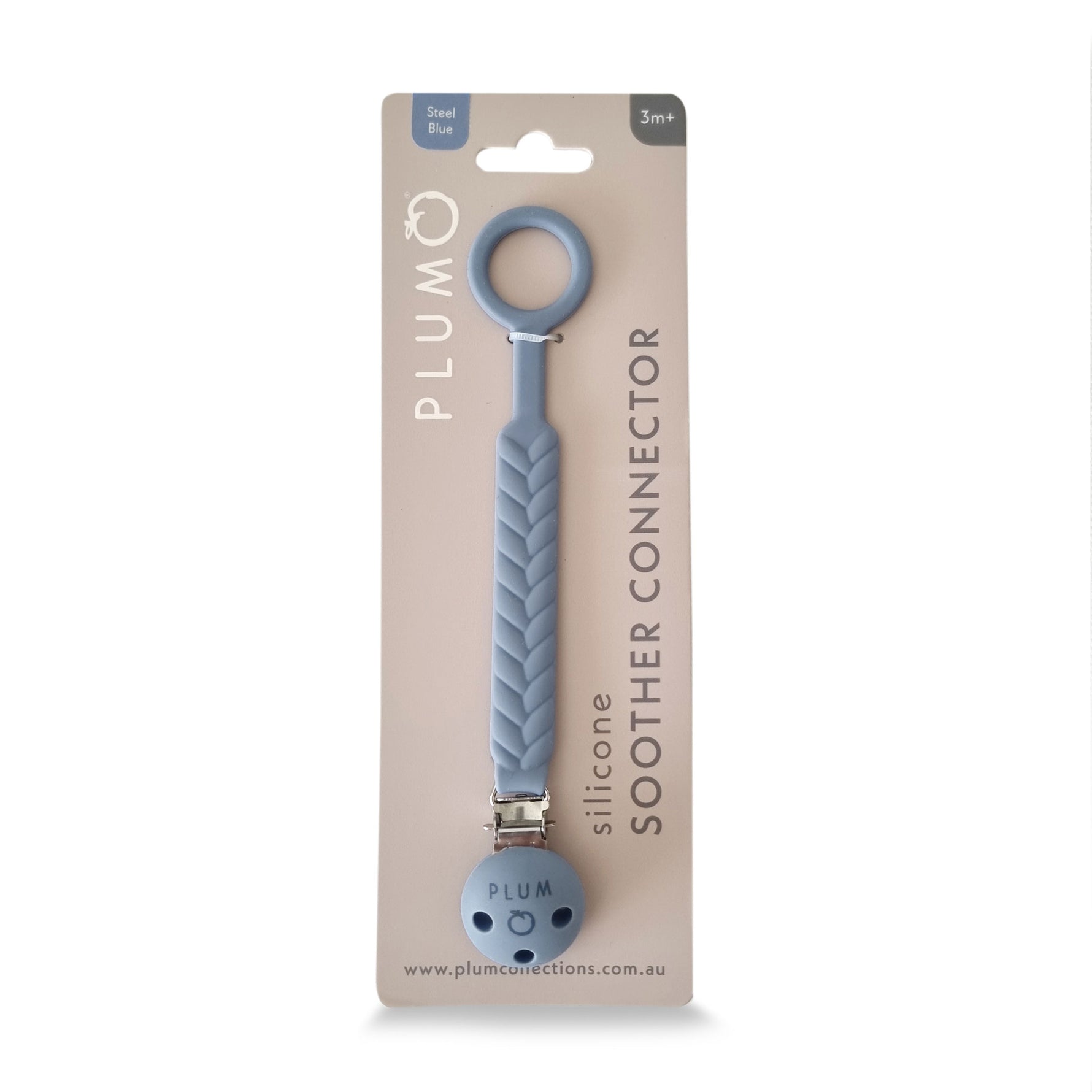 Coordinate the soother connector with PLUM's All Silicone Soother for a stylish & practical combination.