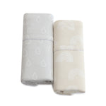 Pack includes one grey raindrop and one sand rainbow design jersey wrap.