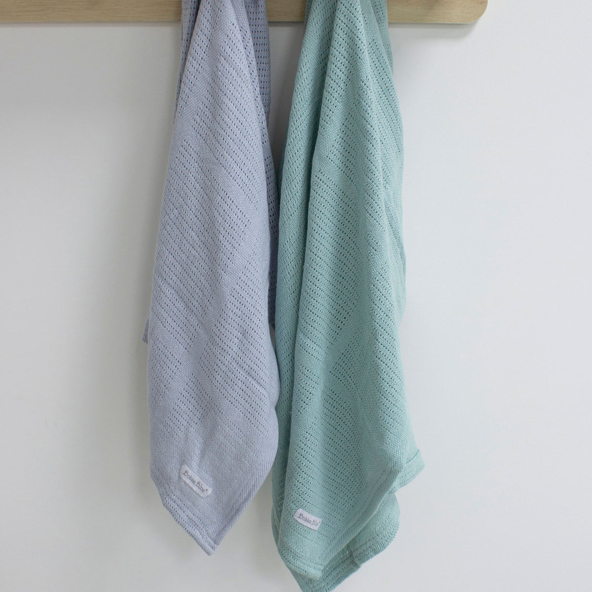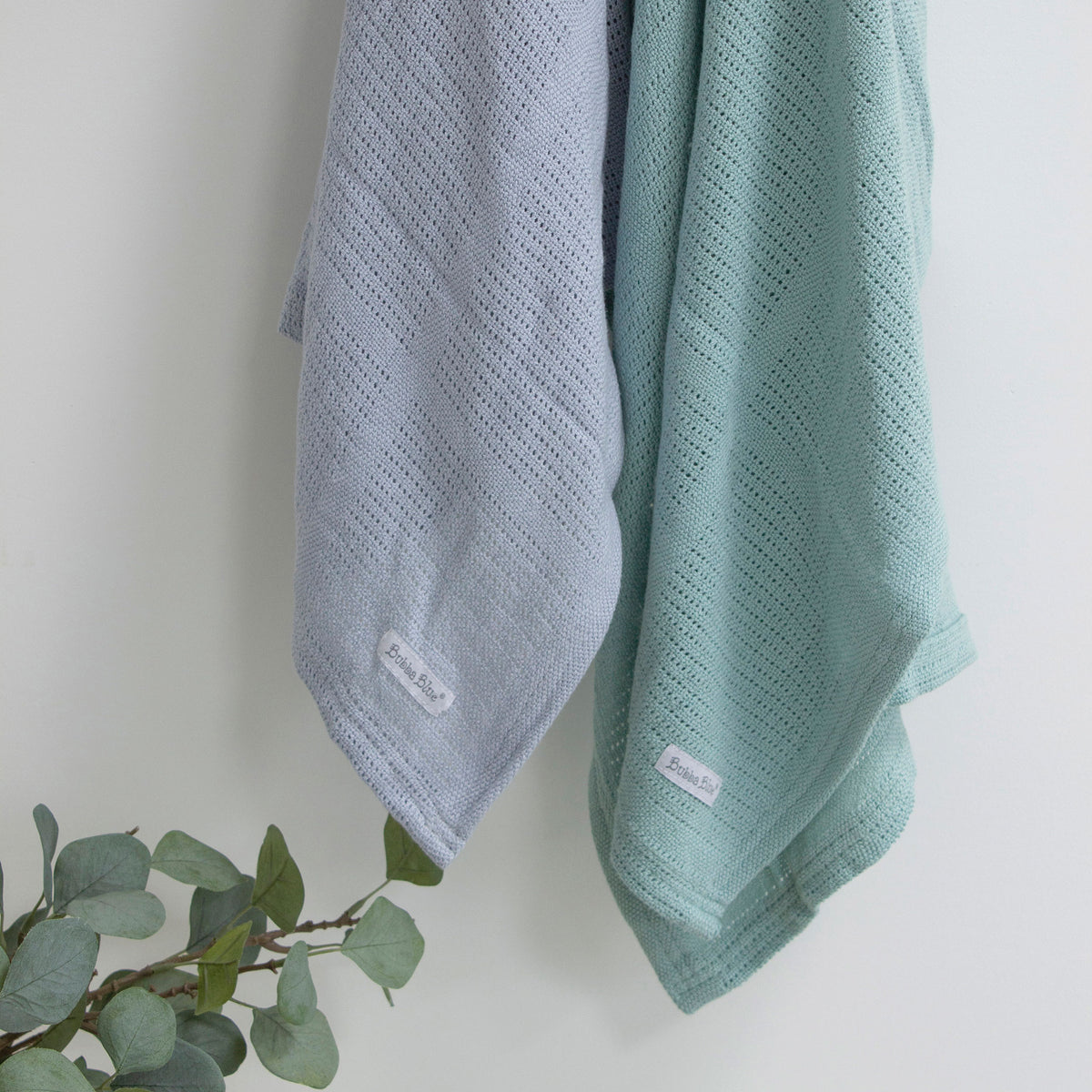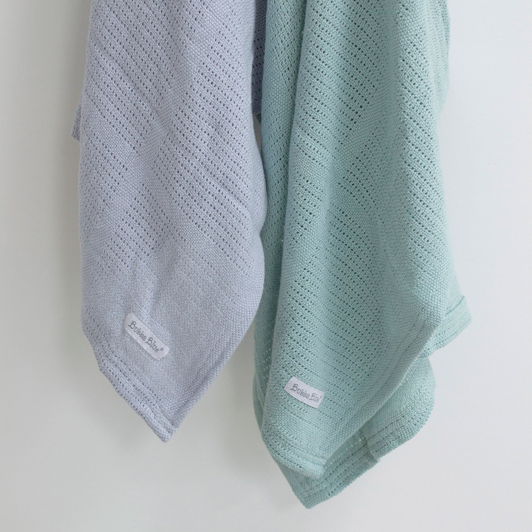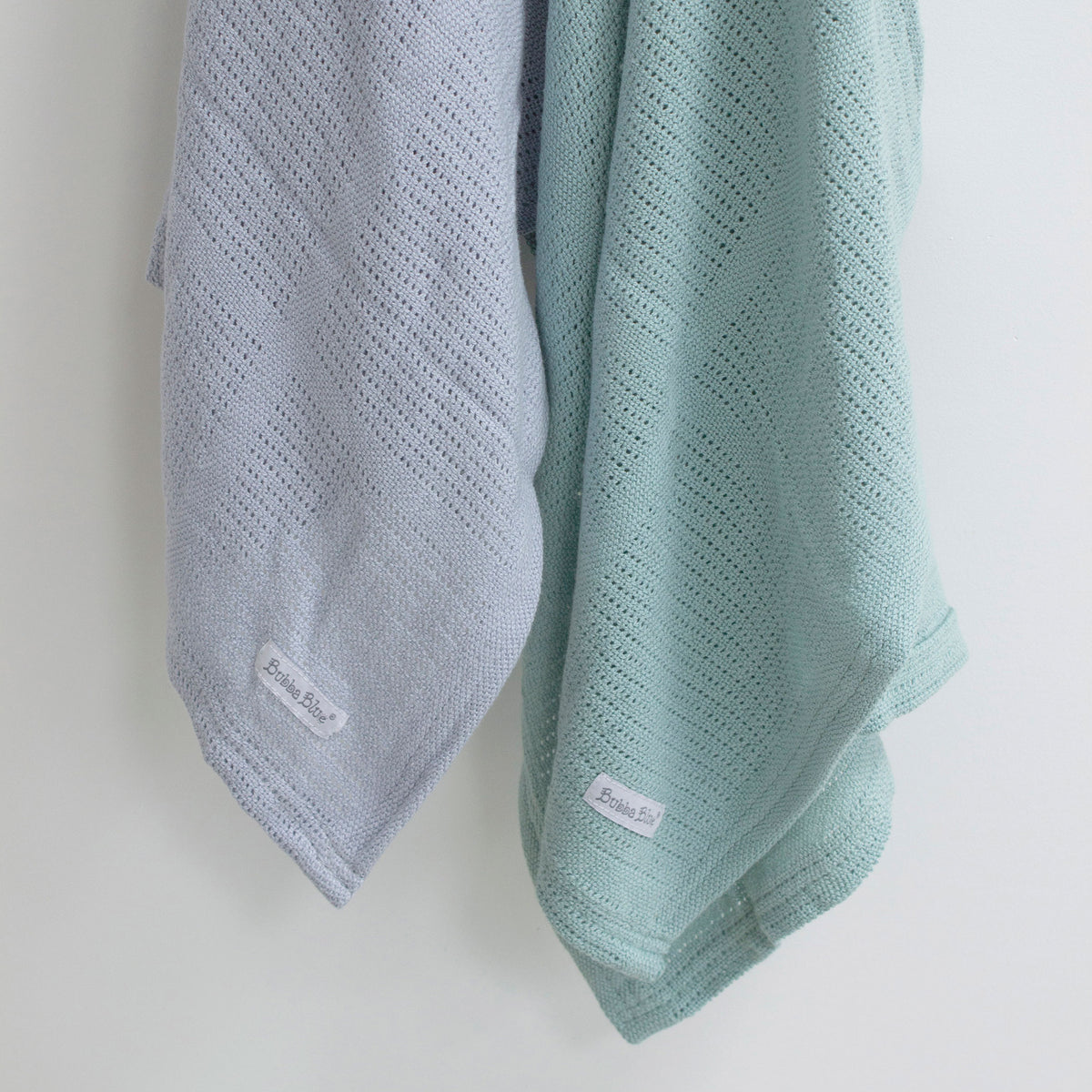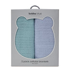 Pack includes one dusty blue and one mint colour cellular blanket. Co-ordinates perfectly with our the Bubba Blue Nordic Collection.